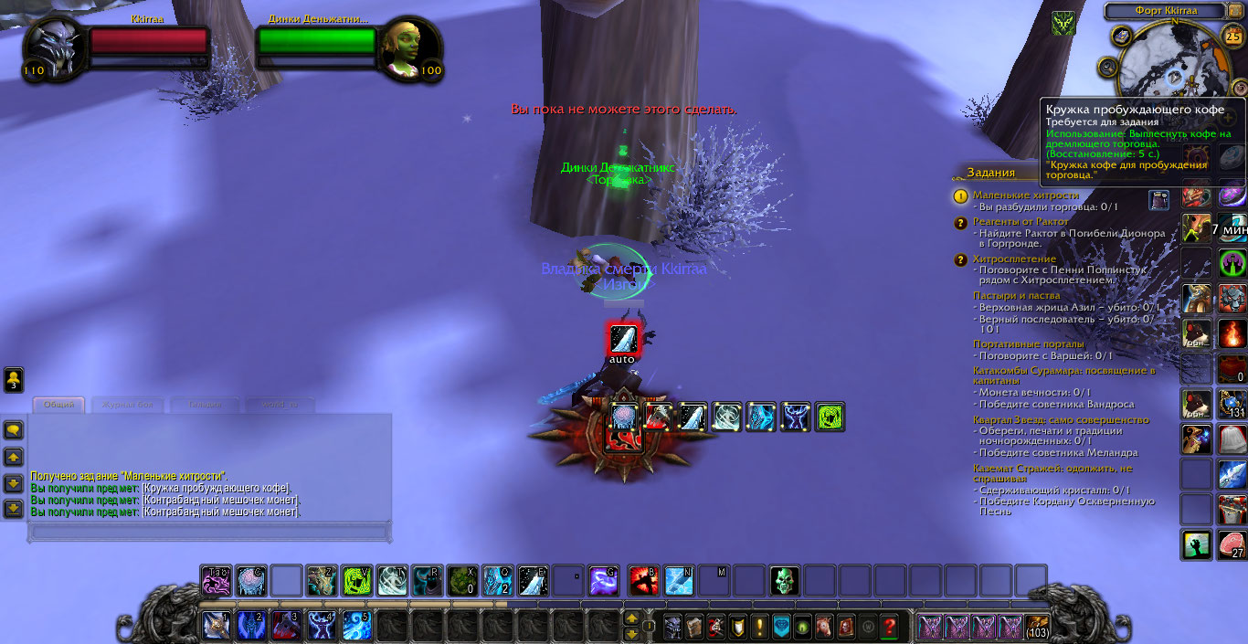 | Description | снова пишу вам с квестом но он уже с дренора "чудовище клана камнерогов" раньше этот квест не работал и я его отменил и забыл потом на форуме посмотрел что этот квест починили и решил вернутся а там уже застава стоит а когда я пытаюсь её разобрать пишет: вы в другой фазе Второй квест: Маленькие хитрости гоблинка лежит под пеньком на нее надо вылить кофе я её нашел клацаю на нее а она не клацается) | ||||