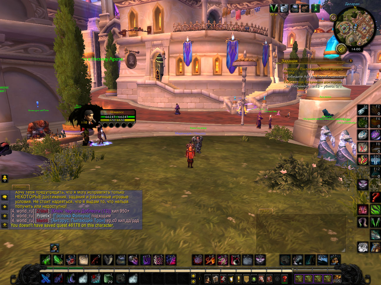 | Description | После выполнения квеста https://ru.wowhead.com/quest=46178 я вернулся в классовый оплот, дабы сдать квест. Но квестгивера https://ru.wowhead.com/npc=98099 не было там, где должно (хотя на миникарте значок отображался. Пошатавшись по возможным местам дислокации данного непися (и, соответственно, её не найдя) я плюнул и решил сбросить и взять квест заново. Но не тут то было. Квестгивер так и не появился ни в оплоте, ни на расколотом берегу, ни где бы то ни было в Даларане. В связи с этим прошу: а) Выдать мне либо заново сей квест, либо самого маунта. б) Исправить этот неприятный баг. З.Ы Все условия для получения выполнены (см. скриншот) З.З.Ы Никнейм в игре - Шаадосс. З.З.З.Ы Дебагер не помог. Пишет что я не выполнял сей квест | ||||