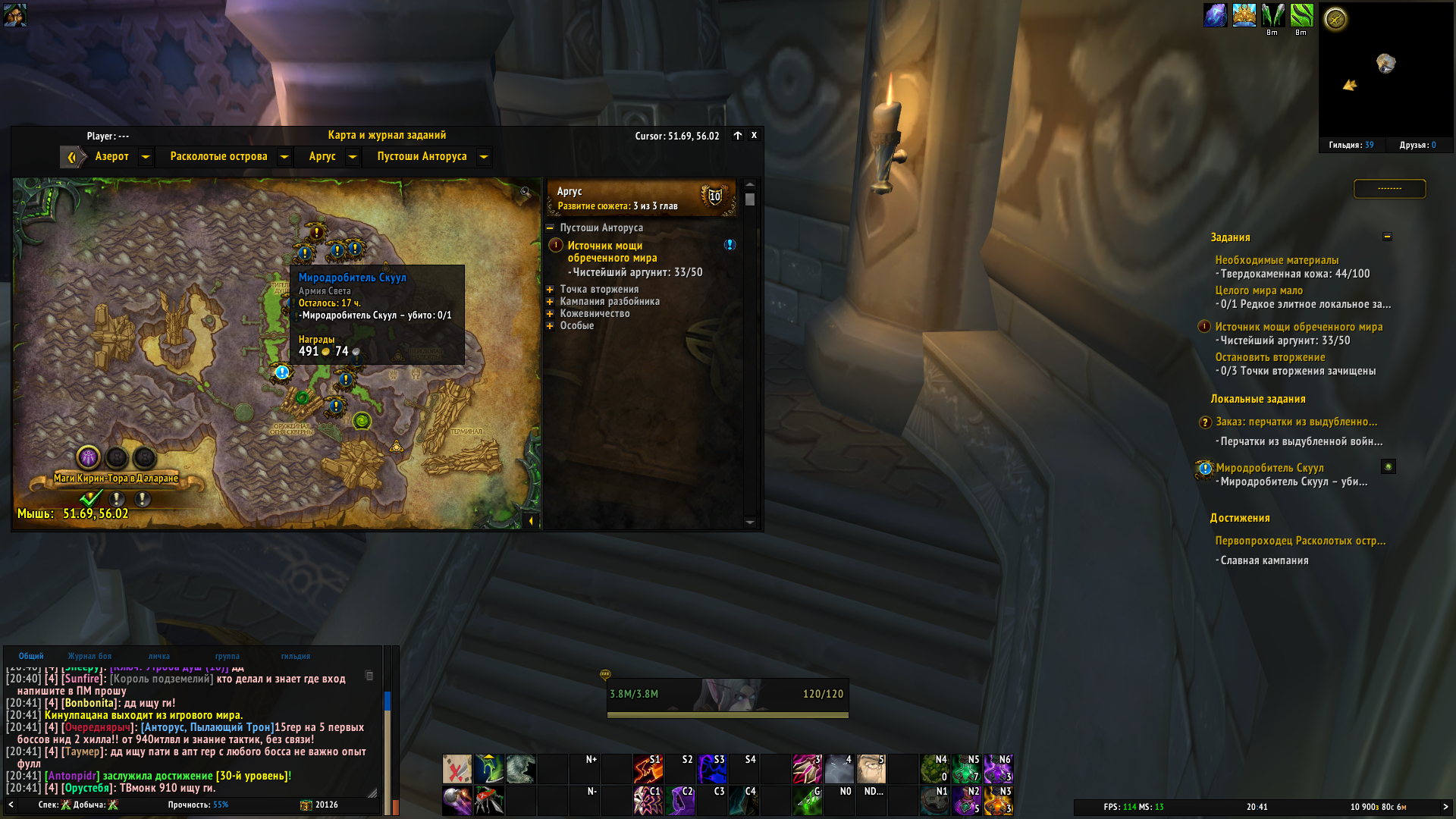 | Description | Разбойникам для завершения кампании оплота и соответственно получения возможности открыть полёты необходимо выполнить квест "Целого мира мало" https://ru.wowhead.com/quest=43479 . Нужно выполнить любое редкое элитное локальное задание. Пробовал выполнять и на островах и на аргусе и в т.ч. квесты "Очень опасен:...", но не засчитывает выполнение. | ||||