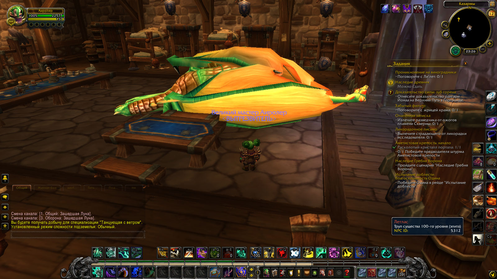 | Description | Аиролер Legionх5 Постоянное появление дракона (https://ru.wowhead.com/npc=5312/%D0%BB%D0%B5%D1%82%D0%BB%D0%B0%D1%81) в гарнизоне 2 уровня в казармах. Если дракон убивает НПС стоящих рядом, улетает в неизвестном направлении. | ||||