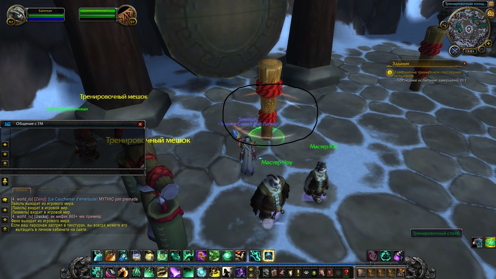 | Description | При запуске квеста Завершение тренировок: последнее испытание, исчезает нпс Мастер Хайт, на его месте сначала ничего не было, потом появился тренировочный столб и появилось некое красное мерцание, попытаться решить проблему самостоятельно я не решился,и написал тикет в помощь, там меня отправили в багтрекер | ||||