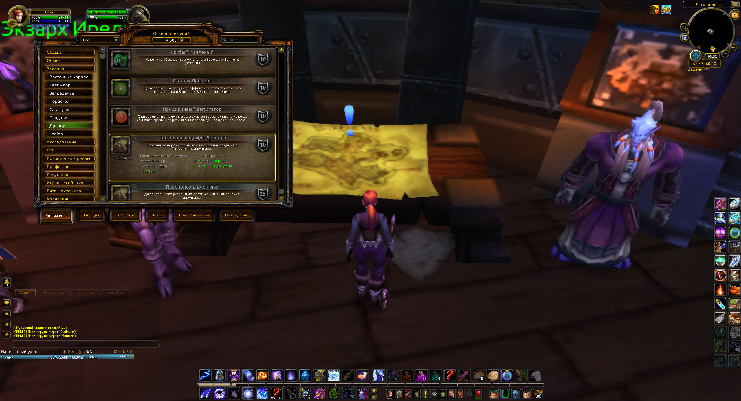 | Steps To Reproduce | 1) взять дейли кв, выполнить (если выполняемый, а они там не все такие) и сдать. 2) в другой день снова взять тот же дейлик (если прокнул). Попробовать выполнить. Область выполнения квеста на карте есть, но если прилететь в нужное место и побить нужных мобов, то можно убедиться, что локалки нет, убитые не засчитываются. Выполнить задание невозможно. репутация, которая апается этими дейликами, нужна для ачива Танаанский дипломат, а это часть достижения Дренорский первопроходец, которое разблокирует полеты на Дреноре. Почините дейлики, пожалуйста. | ||||