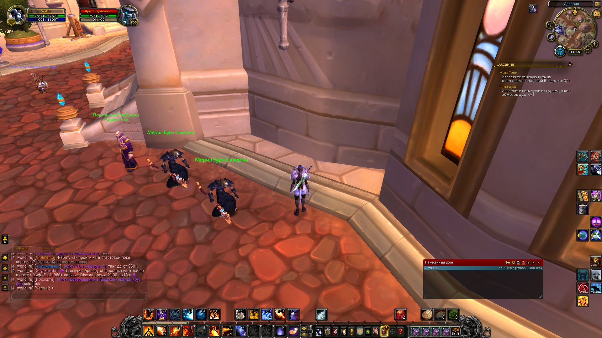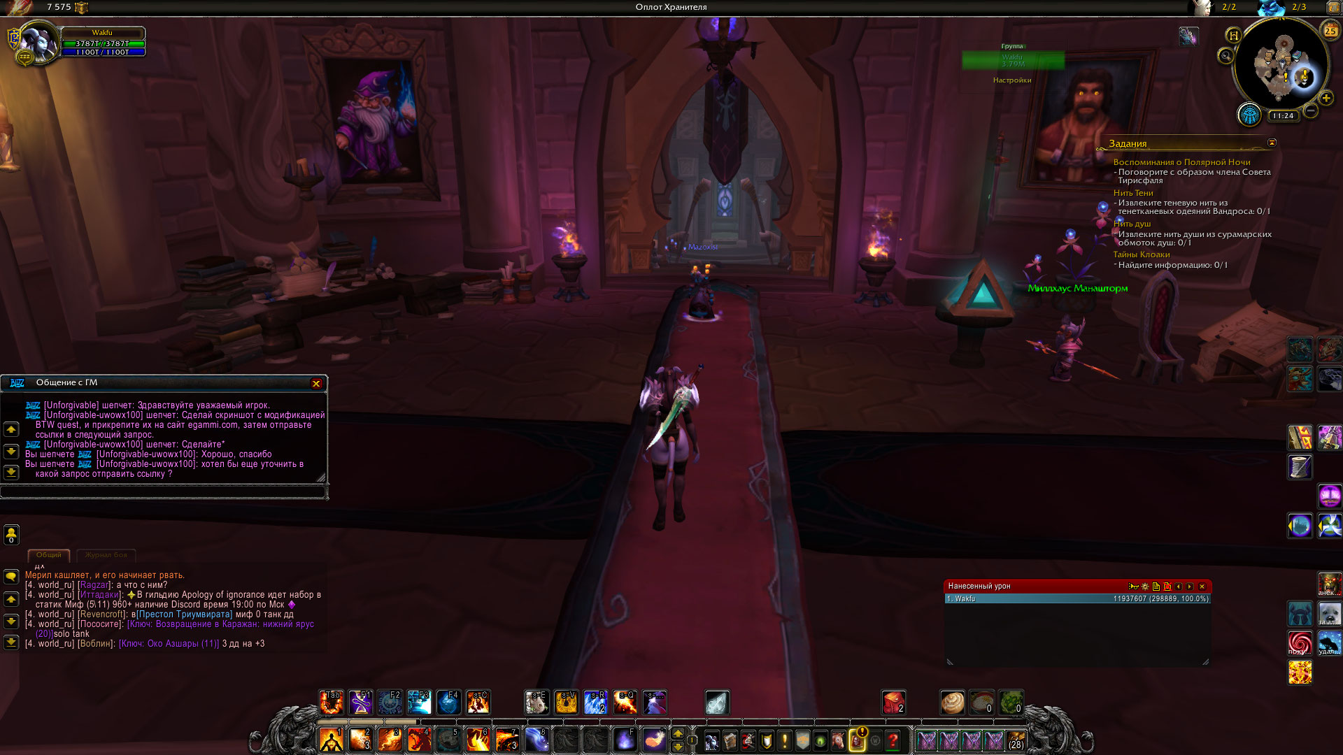 | Description | Квеста нет (Алунет, великий посох Магны quest=42001), в том месте где Мерил Буря Скверны должен его выдавать, NPC нету, в то же время он бегает за мной по Даларану, взаимодействовать с ним нельзя, если какое-то время побегать по Даларану то заспавниться еще один Мерил Буря Скверны и за мной уже бегает 2 Мерила Буря Скверны. ГМ в игре ответил и сказал сделать скриншоты с модификацией BTW Quest и прикрепить их на сайте (https://egammi.net/), затем прикрепить сслыку в этом запросе. Ссылку прикрепил, так же скриншоты продублирую сюда на всякий случай. | ||||