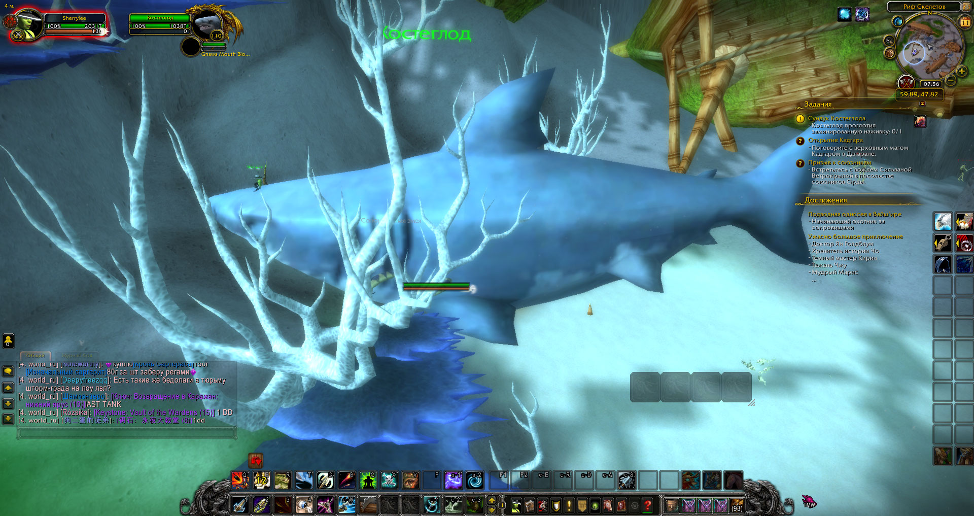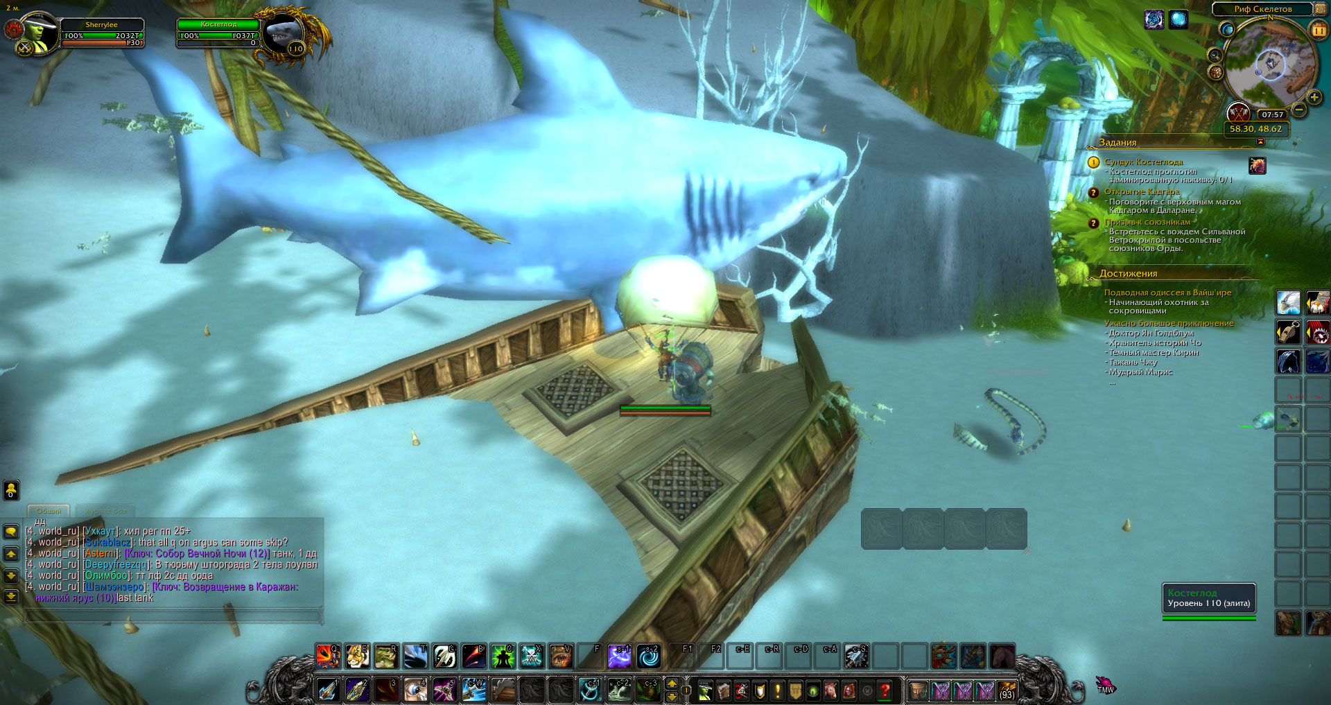 Там вот такая картина, что даже можно сесть верхом на акулу, по идеи должна юзаться приманка и автокомплит квеста происходить. Речь идёт о орде. |