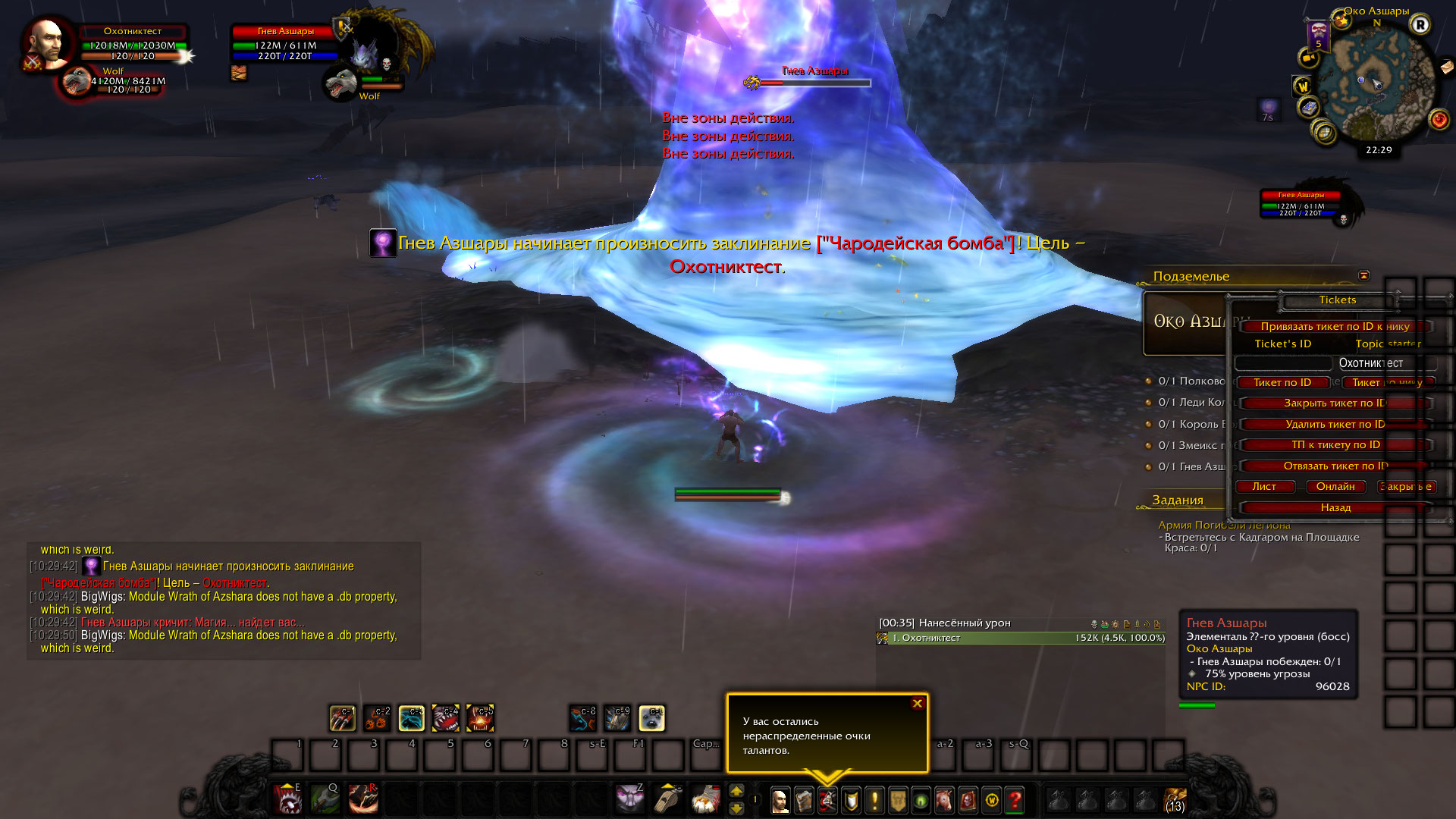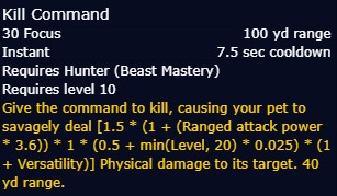 | Description | Команда взять не работает если пет не в ренже 40 метров от ханта Видео с офа: https://youtu.be/zBLB0QJr388?t=1690 Также тултип абилки отличается от вовхедовской патча 7.2.5 (ренж 100) | ||||