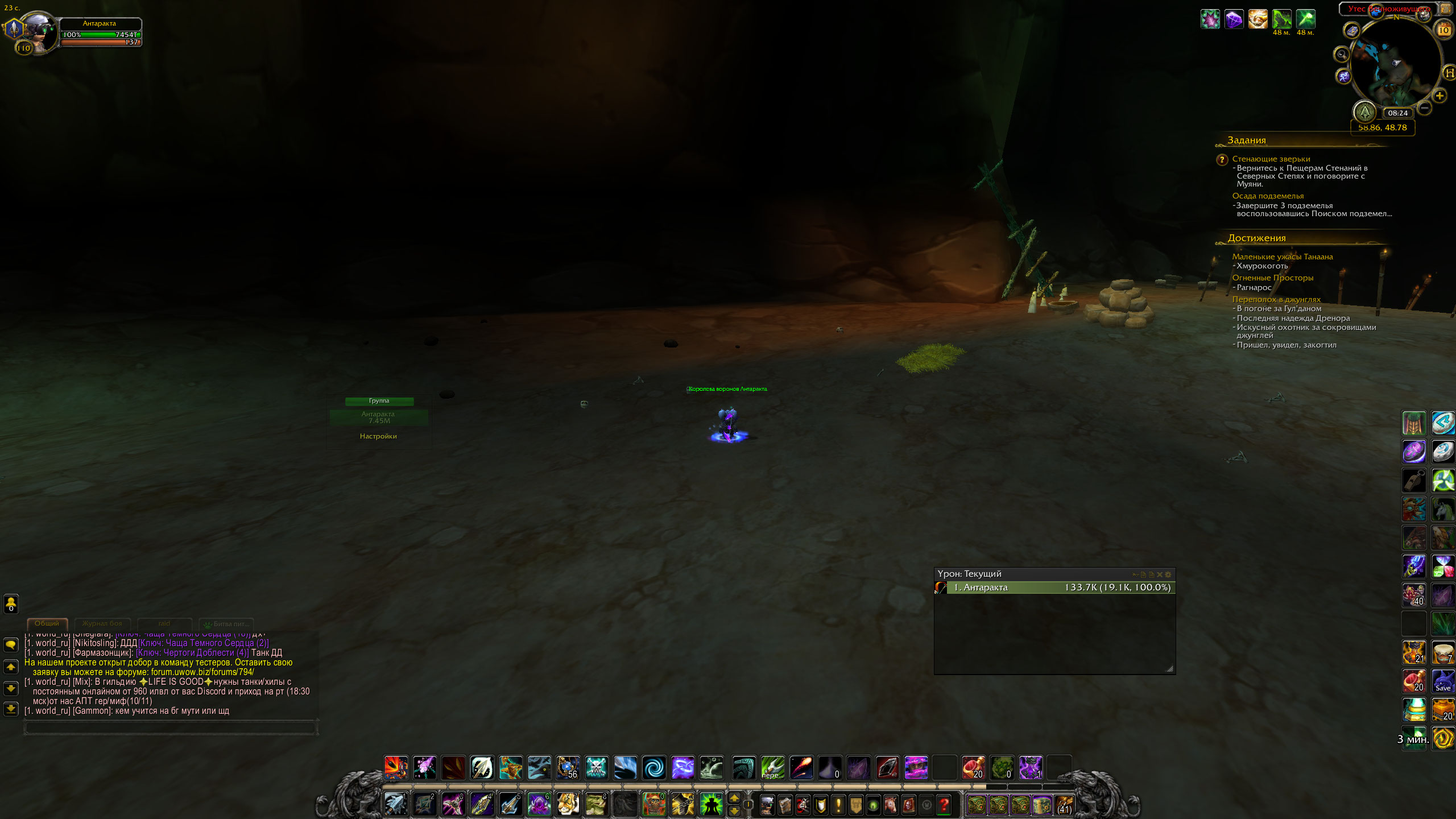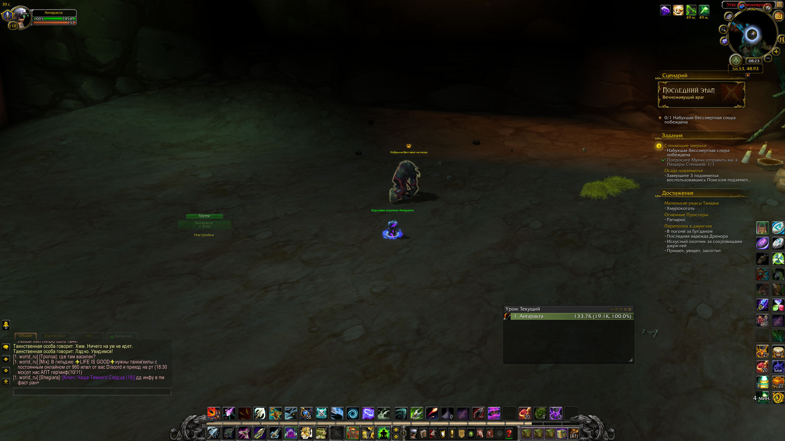 | Description | 1. задание https://ru.wowhead.com/quest=45423 выполняется - решено. 1.1 тайминги диалога некроманта - не решено -[02:56:23] Таинственная особа говорит: Ну вот, поспал, называется. -[02:56:38] Таинственная особа говорит: Боец из меня никудышный -(сократить до 10 секунд) -[02:56:48] Таинственная особа говорит: Короче, расклад такой. Ты тут разбираешься с бардаком, который я устроил, а я эффектно покидаю сцену. -[02:56:53] Таинственная особа говорит: Эээ... погоди. Надо перед уходом сказать что-то пафосное. -(увеличить до 8 секунд) -[02:56:53] Таинственная особа говорит: Эээ... погоди. Надо перед уходом сказать что-то пафосное. -[02:57:01] Таинственная особа говорит: Охх... Не так-то это просто! Вот скажи, тебе всегда удается удачно импровизировать? -(увеличить до 11 секунд) согласно видео https://www.youtube.com/watch?v=0XMbwzQsRjI 1.2 битвы сценария - не решено -бой происходит против команды из 3х питомцев 1 основной и 2 рандомных, могут повторятся из списка: -https://ru.wowhead.com/npc=116786 -https://ru.wowhead.com/npc=116787 -https://ru.wowhead.com/npc=116788 https://www.youtube.com/watch?v=0XMbwzQsRjI https://www.youtube.com/watch?v=qrtXwMeOCi8 2. достижение https://www.wowhead.com/achievement=11765 работает, награда выдается - решено 3. после выполнения https://ru.wowhead.com/quest=45423 НПС https://wowhead.com/npc=116781 должна давать задание https://www.wowhead.com/quest=45539 - не решено https://egammi.net/image/SW4s 4. задание https://www.wowhead.com/quest=45539 нет диалога у НПС https://wowhead.com/npc=116781 для отправки в данж, не стартует сценарий - не решено 5. сценарий с битвами для задания https://www.wowhead.com/quest=45539 - не решено - сценарий аналогичный https://ru.wowhead.com/quest=45423 не стартует - в сценарии не должно быть диалога с некромантом, сразу битва с ластом https://www.youtube.com/watch?v=ROtigZuz8Kw | ||||