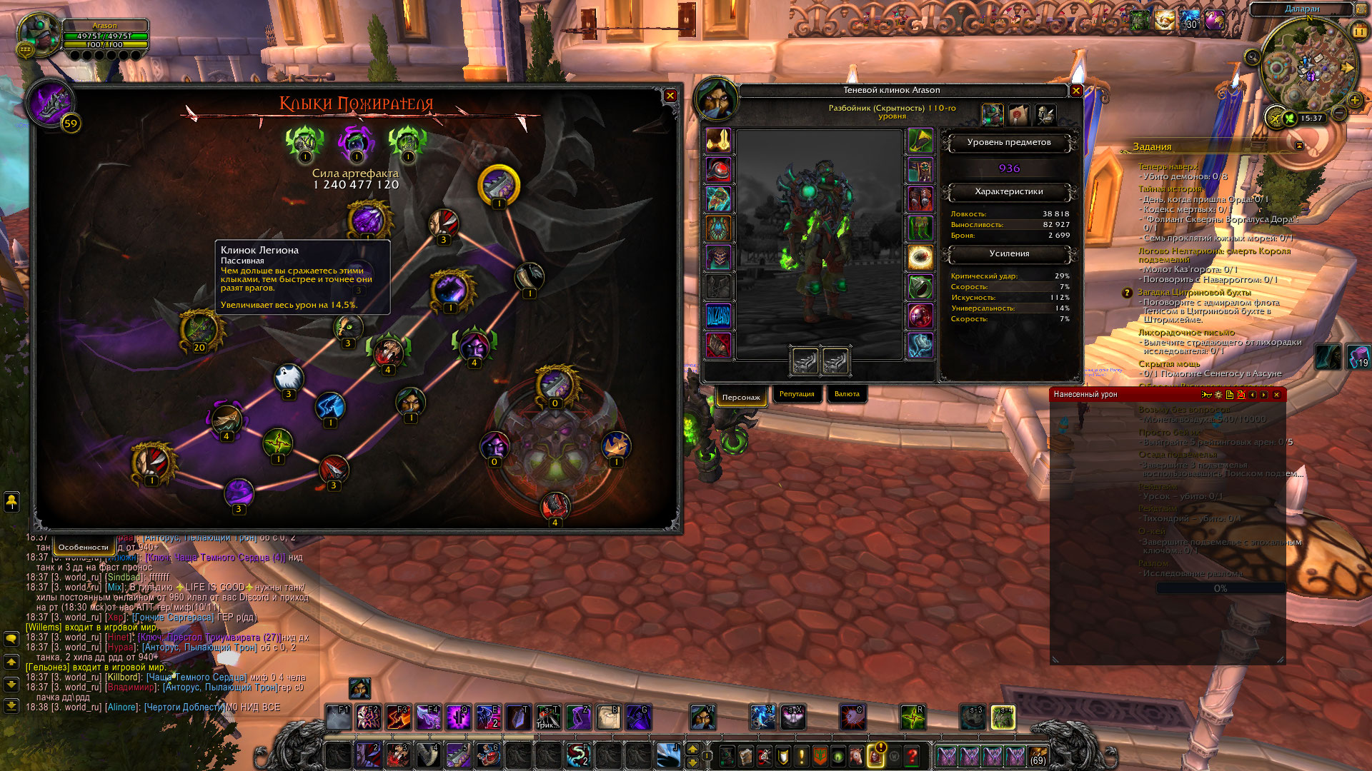 | Description | На персонаже Arason(разбойник человек Legion х100) В артефакте прокачан 20 раз талант, который должен качаться 1 раз. Соответственно вместо 5% урона там 14.5 Из-за этого не хватит талантов чтоб прокачать артефакт полностью. | ||||