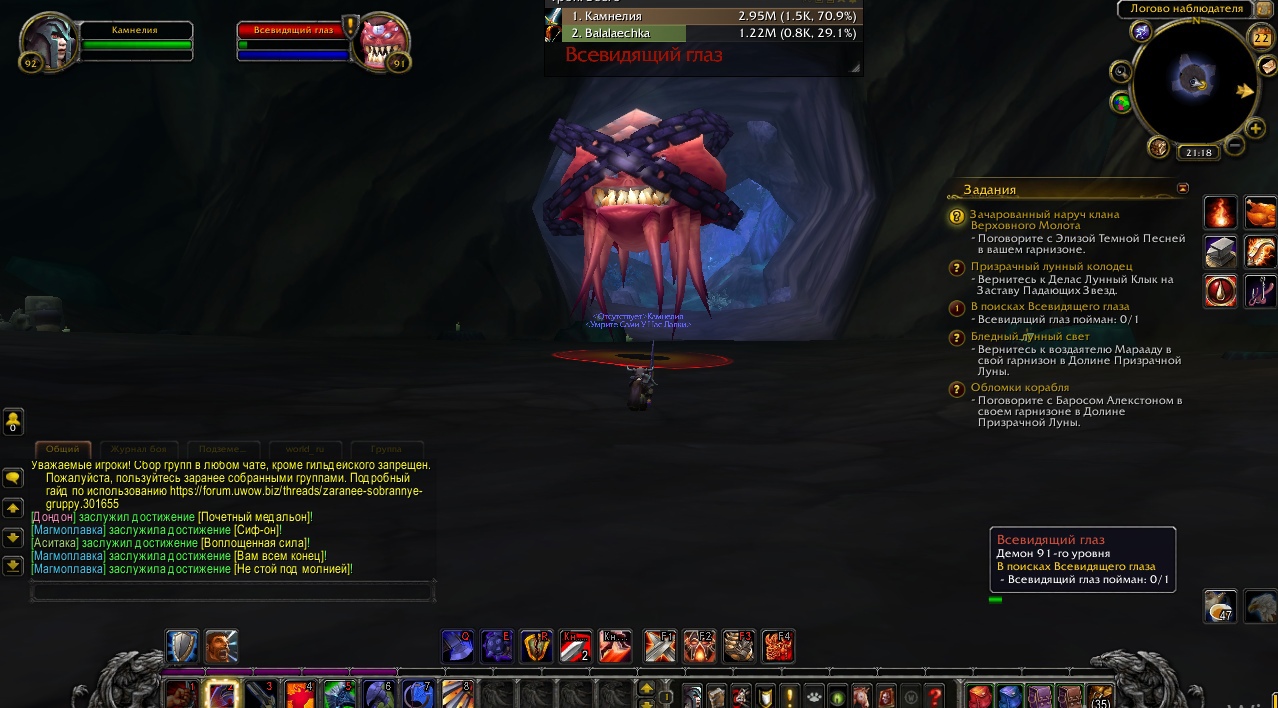 | Description | Квестовый нпц по квесту "В поисках всевидящего Глаза" что на х100, что на х5 постоянно багается. По задумке должна появится эльфийка под лоу хп моба, захватить его и оба исчезнуть. Но, толи игроки ломают, толи не понятно почему но глаз остается в цепях, его нельзя убить, и он не исчезает тем самым руиня квест цепочку. Из-за этого квеста не возможно дальше получить другие квесты, а точнее мне очень хочется сделать фулл цепь для 2 лвла гарника и идти дальше, я так уже делал. Но глаз начал багатся и вот как-то так | ||||