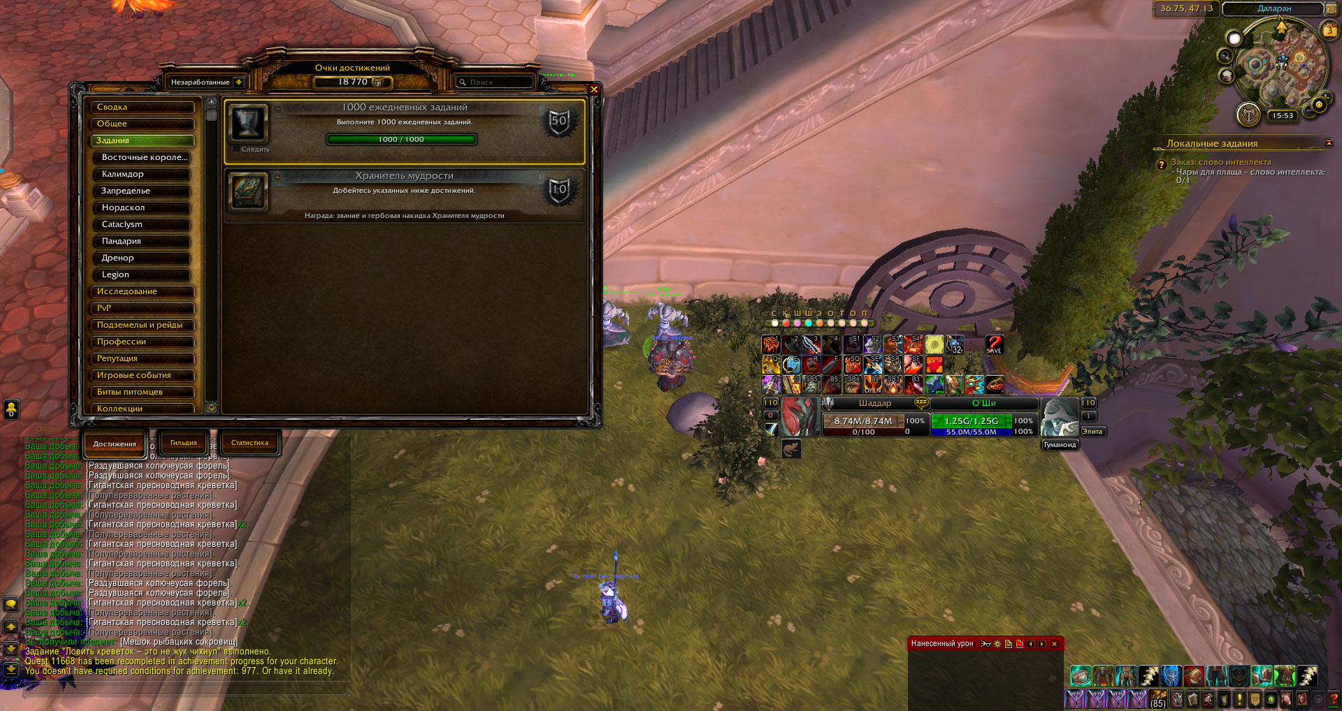 | Description | 1. https://ru.wowhead.com/achievement=977 2. Не засчитывается при выполнении условия. Пробовал перезасчитать у О'Ши как по квесту, так и по ачиву. Сделал 1000 дэйликов на другом персе - результат тот же. | ||||
