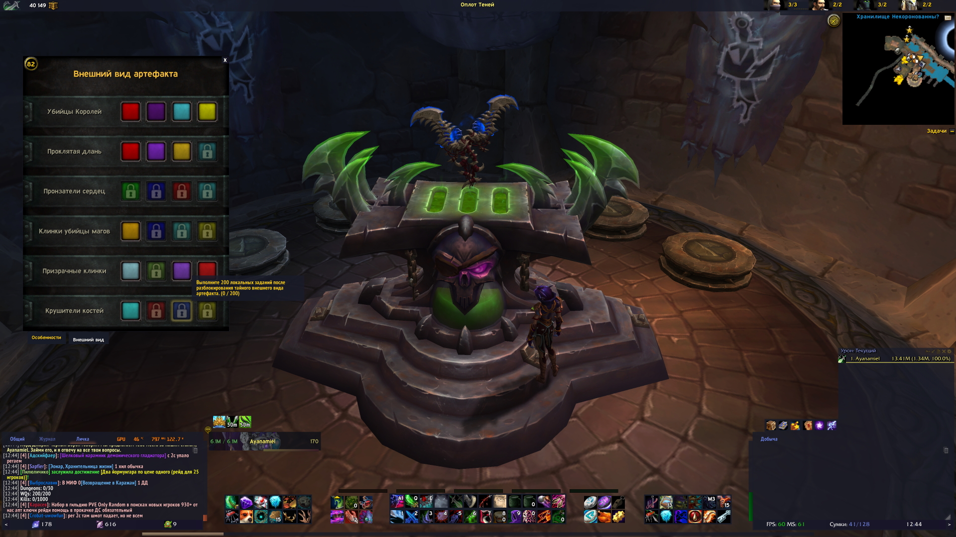 | Description | После открытия скрытого облика "Крушители костей" артефакта "Убийцы королей" (разбойник, ликвидация), не открывается цвет, открывающийся за выполнение 200 локальных заданий после открытия скрытого облика артефакта, скрипт показывает WQs 200/200, а в Тигеле Некоронованных 0/200 (скриншот прилагаю) | ||||