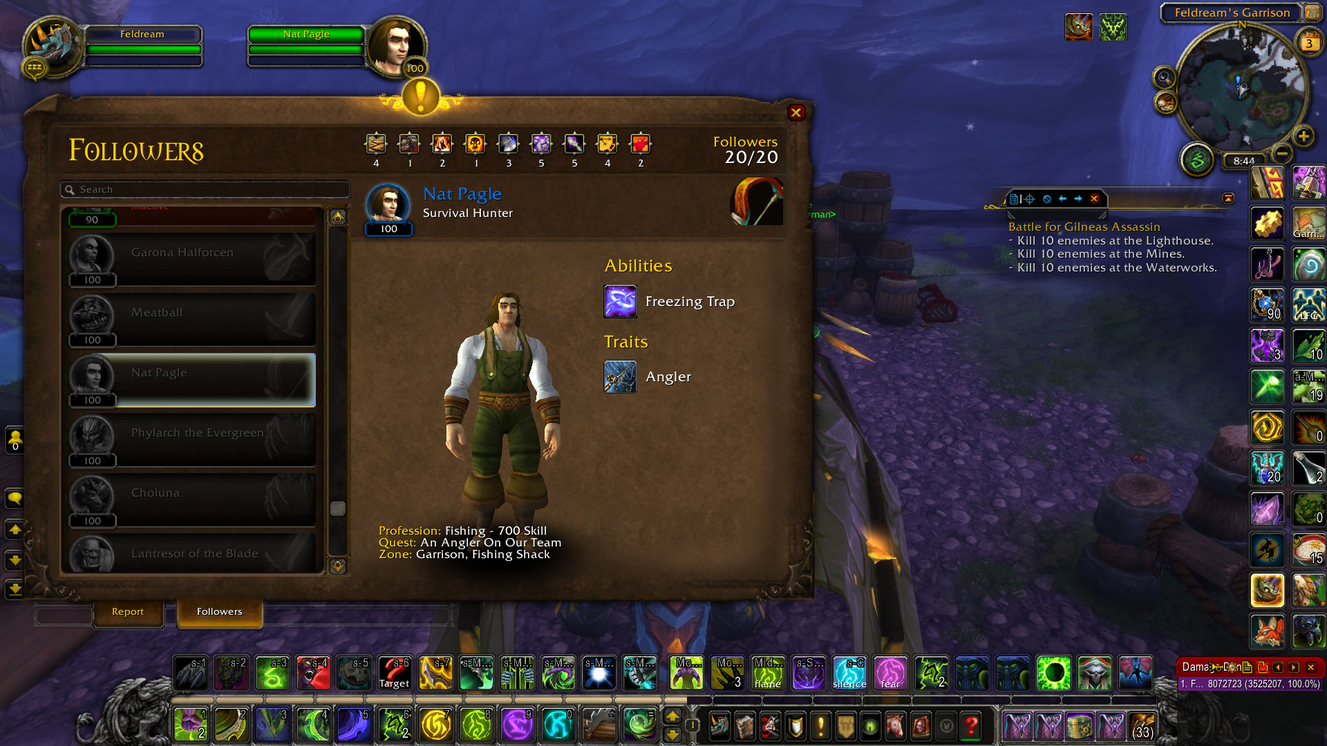 | Description | The quest is missing (can't be taken / completed to get follower https://www.wowhead.com/follower=202/nat-pagle) from https://www.wowhead.com/npc=85984/nat-pagle. Even if you have all the conditions achieved the quest still can't be seen: 1. Fishing max 800 2. Reputation with https://www.wowhead.com/npc=85984/nat-pagle max Best friend. 3. Prequest https://www.wowhead.com/quest=36611/a-true-draenor-angler completed. There is an old "fix" http://tracker.legionbugs.com/view.php?id=9013 but it seems it's only instructions. | ||||