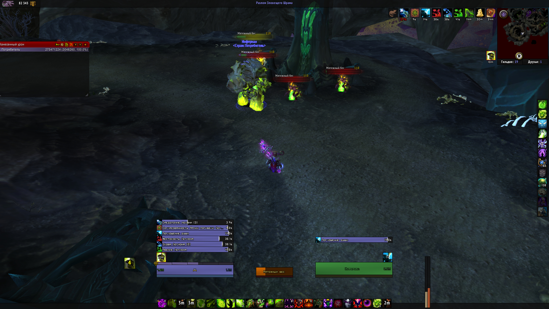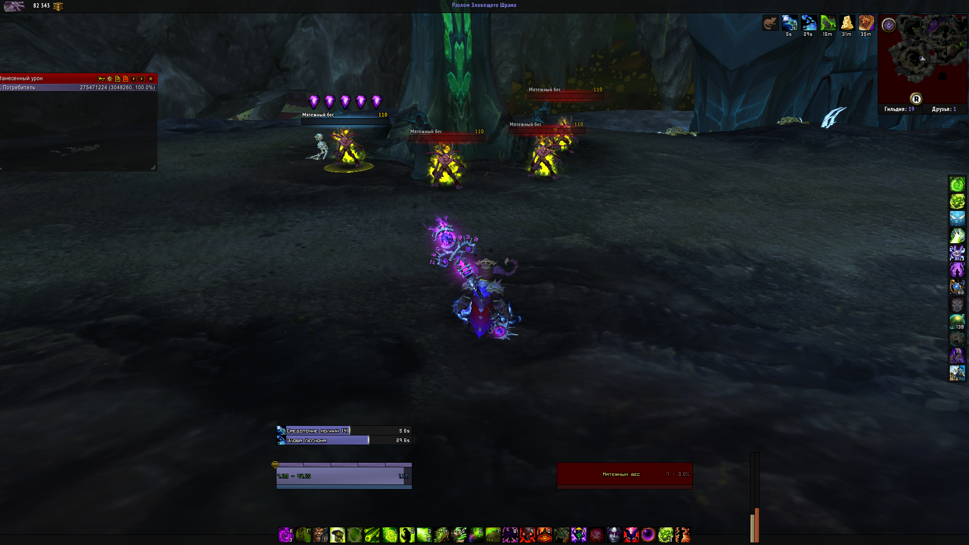 Кстати, в дополнение ко всему этому приведу ещё 1 пример. У петов, призываемых с помощью https://ru.wowhead.com/spell=157757/%D0%BF%D1%80%D0%B8%D0%B7%D1%8B%D0%B2-%D1%81%D1%82%D1%80%D0%B0%D0%B6%D0%B0-%D1%83%D0%B6%D0%B0%D1%81%D0%B0 и https://ru.wowhead.com/spell=1122/%D0%BF%D1%80%D0%B8%D0%B7%D1%8B%D0%B2-%D0%B8%D0%BD%D1%84%D0%B5%D1%80%D0%BD%D0%B0%D0%BB%D0%B0 серьезные проблемы с определением цели. Они должны выбирать ближайшую (если идет бой)/текущую цель. На деле же, судя по этому примеру, они выбирают цели, в которых вошло больше урона. 1. Я немножко побил бесов, у них прошли все негативные эффекты, я вышел из боя 2. Я решил немного потестить урон в соло таргет на другом маникене, пришло время призывать ИН-ФЕР-НАЛОВ 3. Они куда-то побежали 4. Эти засранцы начали бить бесов |