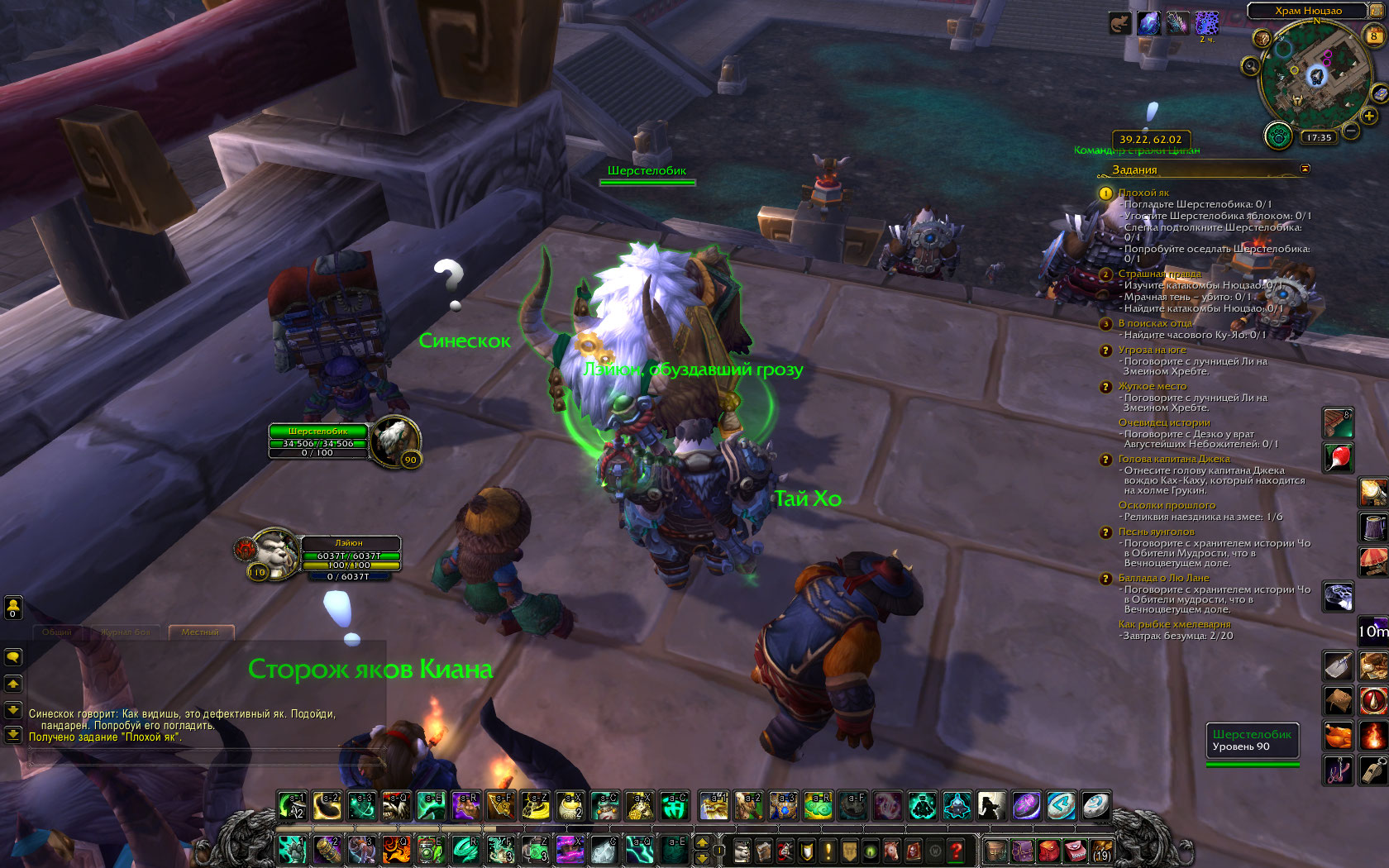 DescriptionНевозможно погладить https://ru.wowhead.com/npc=61163/шерстелобик при выполнении квеста https://ru.wowhead.com/quest=30929/плохой-як , в связи с чем квест выполнить невозможно. Прикладываю скриншот со взаимодействием с яком.