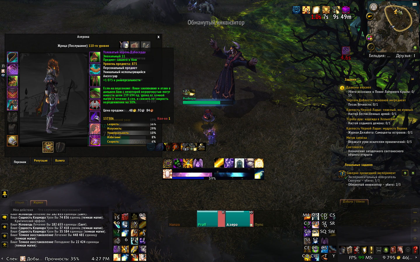 | Description | https://ru.wowhead.com/item=137306/узловатый-корень-дубосерда может активировать свой дот на себе при использовании https://ru.wowhead.com/spell=186263/темное-восстановление работает только на себе, на тиммейтах не работает | ||||