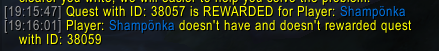 | Description | I´ve recently started the Stormheim questline on aliance, but i got stuck on quest The Lost Legion (https://www.wowhead.com/quest=38057/the-lost-legion#guides). Ive found Knight-Captain Rhodes, turned the quest in, but he didnt give me the followup quest (https://www.wowhead.com/quest=38059/pins-and-needles). Images below are showing the quest status of The Lost Legion and the followup using .q s command Also sending a screenshot where im next to the NPC and he has no quest for me, cannot interact with him anyhow. | ||||
