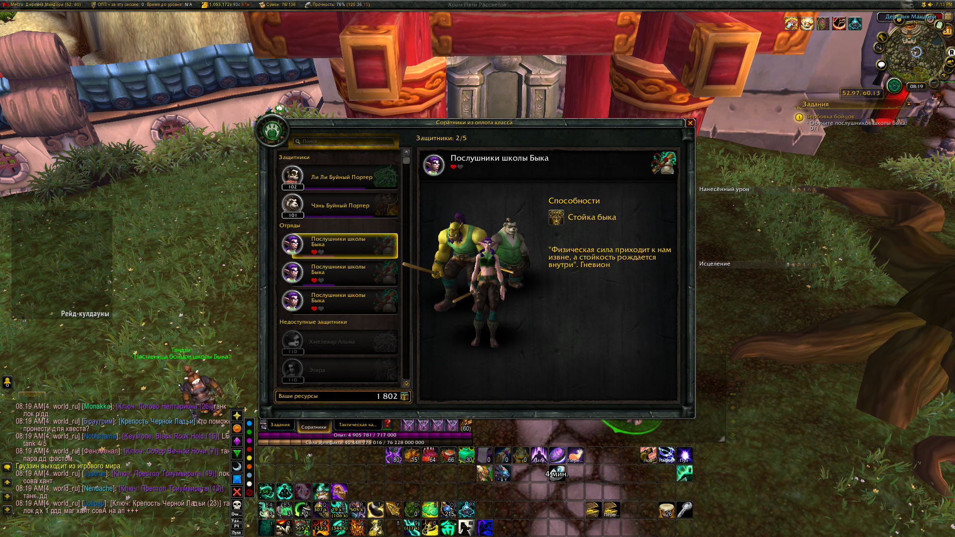 | Steps To Reproduce | Квест не работает корректно, при получение соратников через флаг который стоит рядом с Нпс квест https://ru.wowhead.com/quest=41946/вербовка-бойцов не сдаться | ||||