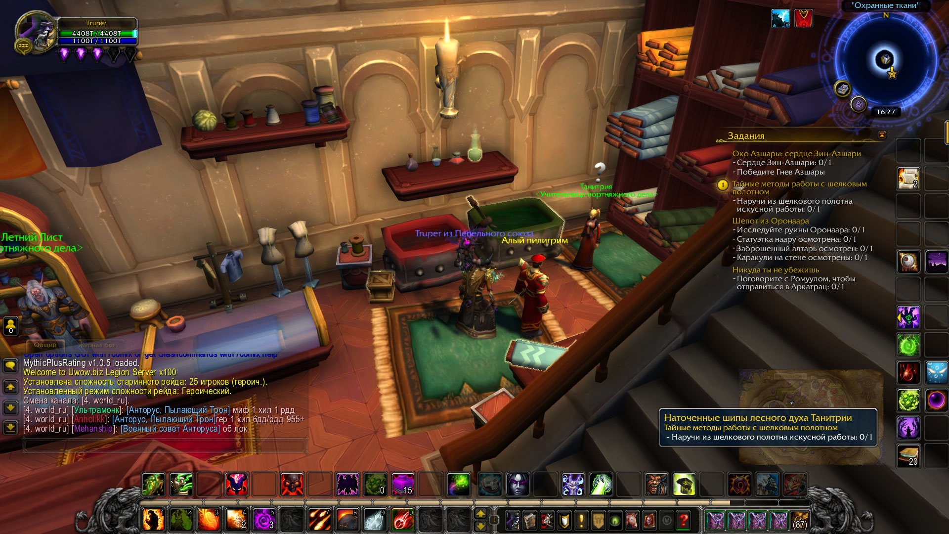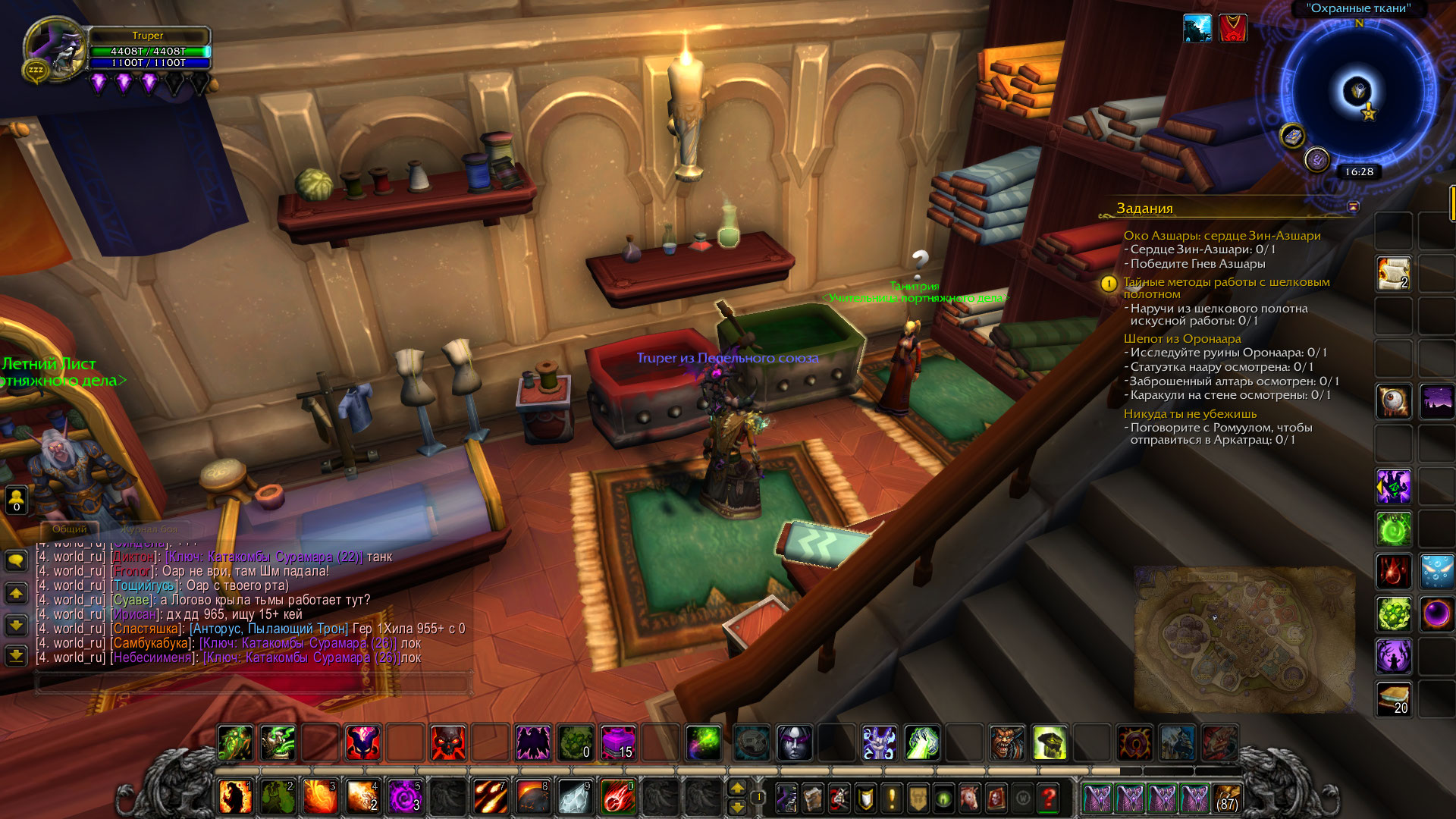 | Description | Здравствуйте! Забагался квест "Тайные методы по работе с шелковым полотном" по профессии "Портняжное дело". А именно: По квесту надо сделать "Наручи из шелкового полотна искусной работы". Все необходимые квестовые предметы берутся либо в лавке у портного либо у кузнеца. По квесту нужен предмет "Наточенный шип лесного духа Танитрии", который берется из ящика ряд с чанами для окрашивания в лавке портного в Даларане. Так вот в чем собственно проблема. При клике на ящик ничего не происходит. Ящик просто исчезает, квестовый предмет не появляется в рюкзаке. Все остальные нужные предметы для задания берутся нормально. Соответственно квест я выполнить не могу. Пробовал уже много раз, всегда одно и тоже. Релог, чистка WTF, Cashe и т.д. я пробовал, квест отменял и снова брал. все одно и тоже. Прошу исправить | ||||