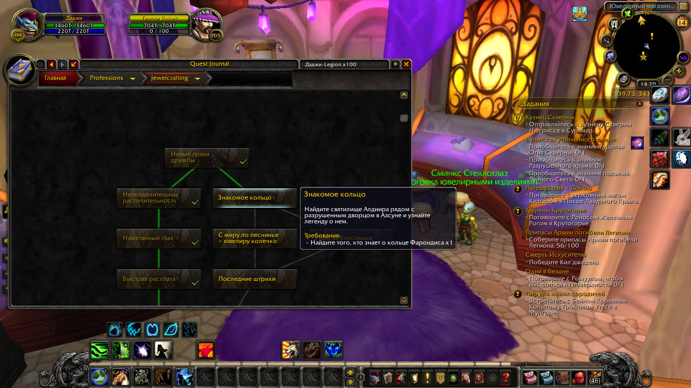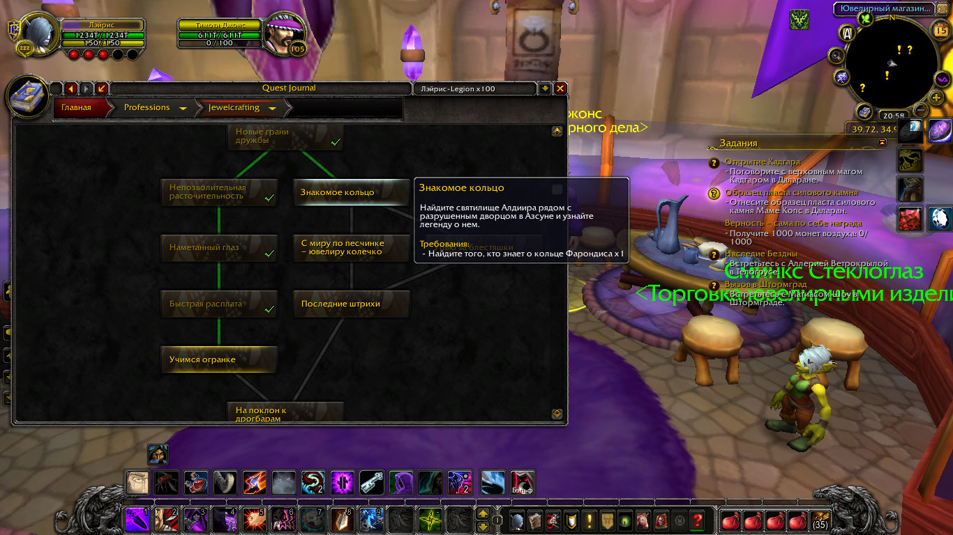 Summary0020700: Отсутствие задания ювелирного дела "Знакомое кольцо" на Legion x100 Uwow