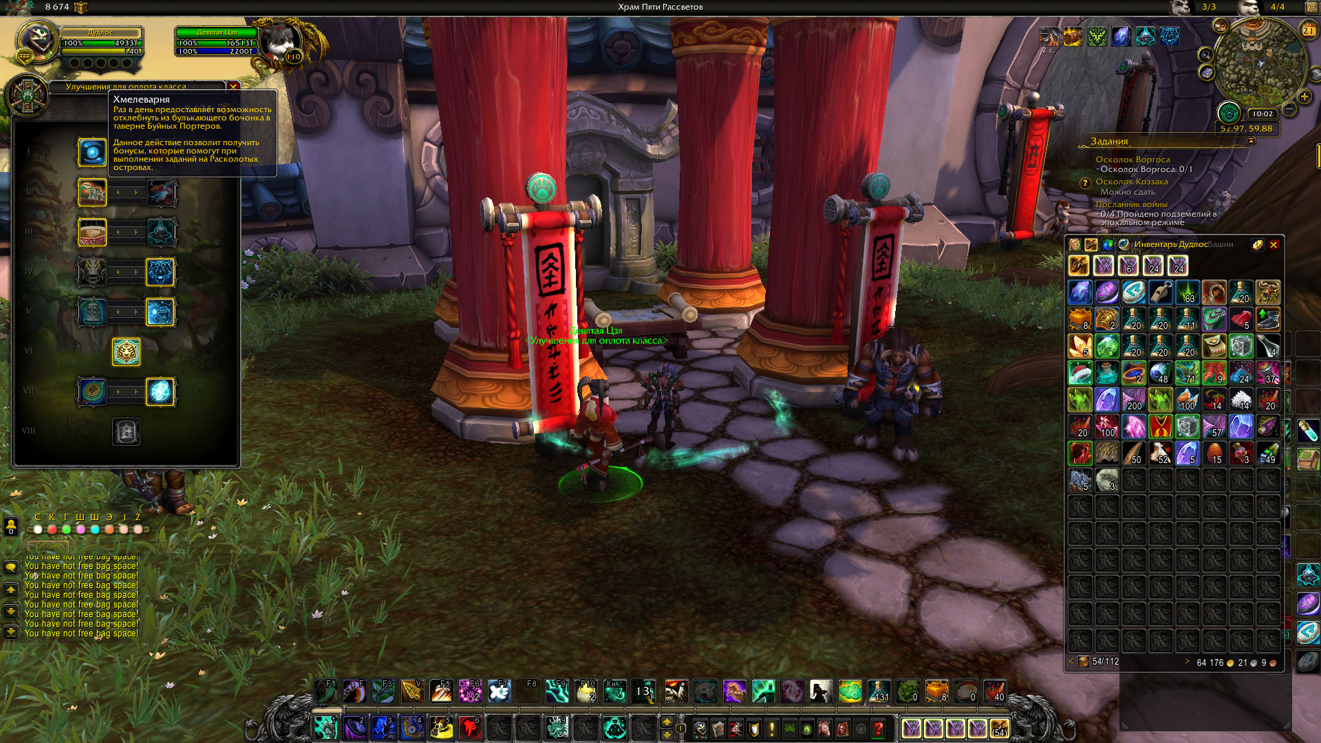 | Description | Прокачал в оплоте класса( монаха) таверну в которой спавниться бочонок, с которого можно залутать секретный облик артефакта хмелевара и в один момент времени (наверное года два назад), мне начало выдавать ошибку, мол сумки полные и не могу залутать бочку. Пытался заново прокачать таверну, но и это не помогло. | ||||