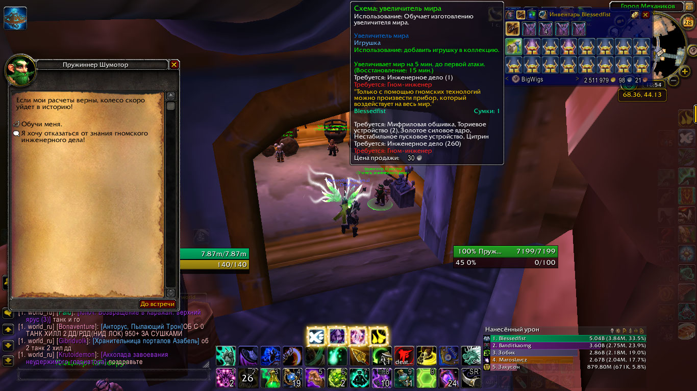 Descriptionотсутствует квест на гномское инженерное дело, у нпс есть возможность только отказаться от него, при том что соответствующего навыка нету(На скриншоте видно, что невозможно изучить рецепт из-за отсутствия гномского инженерного дела)