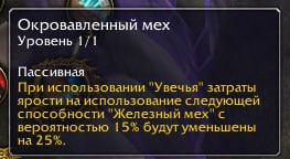 | Description | Друид (Страж) У способности "Железный" мех указана странная стоимость в 10 ярости (иногда также случайное число от 10 до 22), показывая иконку доступной для нажатия, при наборе этого количества. Фактически кнопка работает только при наборе нормального количества (45 ярости). Предположу что виной всему талант артефакта "Окровавленный мех" | ||||