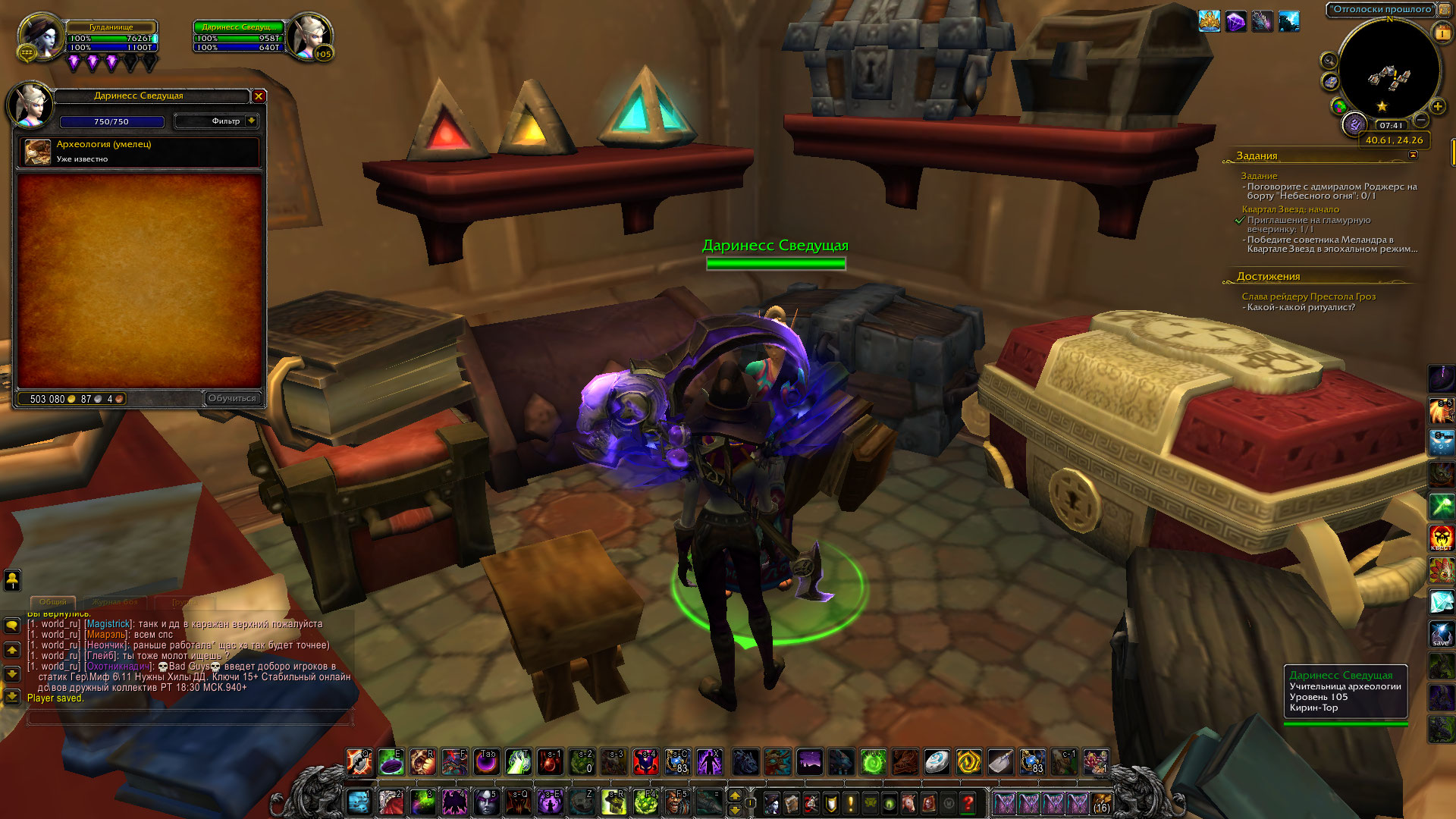 | Description | Прокачал у учителя археологию до 750, апнул до максимума, но до 800 изучить не могу, хотя вроде бы у этого нпс https://ru.wowhead.com/npc=93538/%D0%B4%D0%B0%D1%80%D0%B8%D0%BD%D0%B5%D1%81%D1%81-%D1%81%D0%B2%D0%B5%D0%B4%D1%83%D1%89%D0%B0%D1%8F должна продаваться книжка для прокачки https://ru.wowhead.com/item=136419/%D0%B7%D0%B0%D0%BF%D0%B8%D1%81%D0%BD%D0%B0%D1%8F-%D0%BA%D0%BD%D0%B8%D0%B6%D0%BA%D0%B0-%D0%B0%D1%80%D1%85%D0%B5%D0%BE%D0%BB%D0%BE%D0%B3%D0%B0#teaches-recipe но ее там нет и изучить выше 750 навык не получается. | ||||
