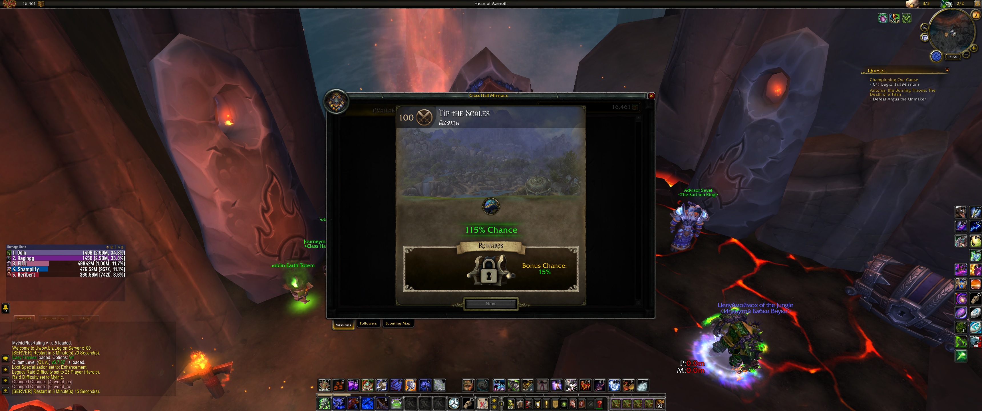 | Description | When I started few missions in class hall on my shaman named Shamplify it resulted in issue that I cannot finish the first mission. Because of that I cannot do any mission table quest and cannot finish broken shore questline.Or I cannot do any missions. | ||||
