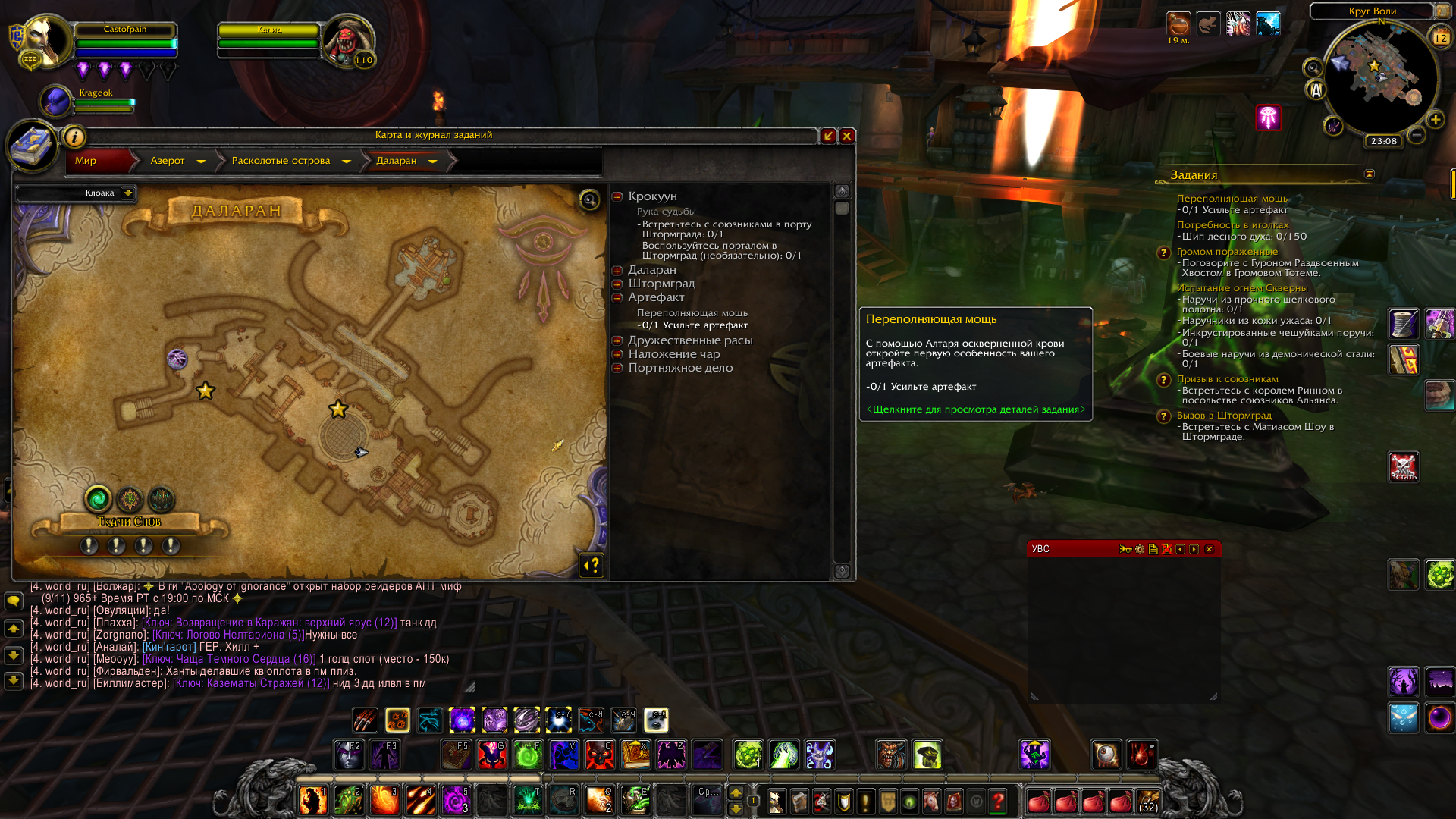 | Description | Во время выполнения https://ru.wowhead.com/quest=40731/%D1%81%D0%B5%D1%80%D0%B4%D1%86%D0%B5-%D0%B7%D0%BB%D0%BE%D0%B2%D0%B5%D1%89%D0%B5%D0%B3%D0%BE-%D1%88%D1%80%D0%B0%D0%BC%D0%B0 после того, как поместил сердце и выслушал демона, экран потух на секунду и ничего не изменилось. После попыток релога (выкидывает на стартовую локацию), умереть (воскрешает в разломе) ничего не происходило. После телепорта в даларан появилась возможность сдать квест Калиду в стоках, но следующий квест уже не удаестя выполнить, т.к. портал в оплот неактивен, его просто нет. | ||||