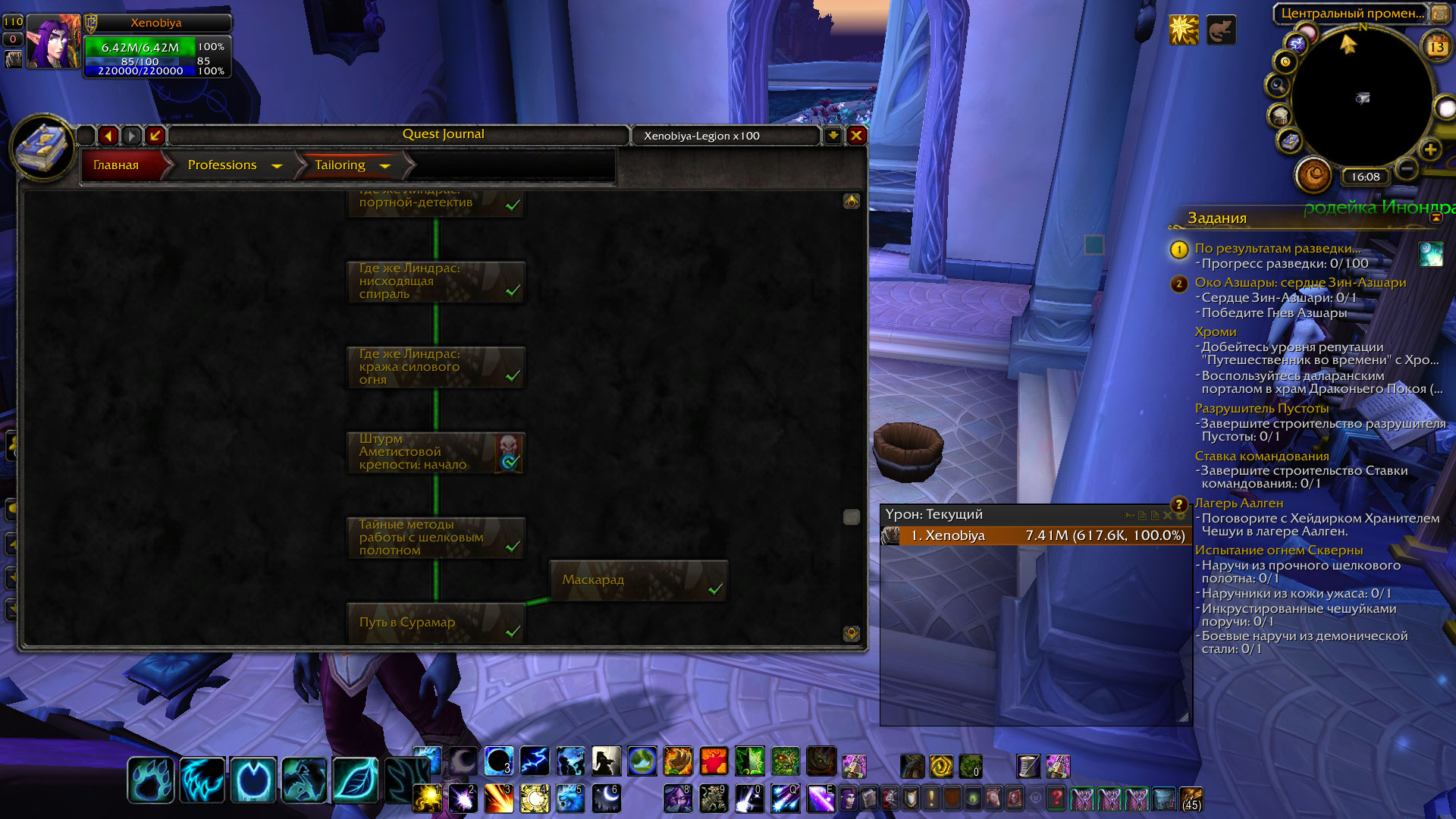 | Description | На персонаже с ником Xenobiya не могу получить рецепт в профессии "Портняжное дело" "Прочное шелковое полотно. Персонаж был перенесен с сервера "Circle x4". Цепочка квестов пройдена, дополнительные квесты нпс не дают. Вся сюжетная линия в локации "Сурамар" пройдена (проверена аддоном "BtWQuests"). Прошу помочь в решении вопроса. | ||||