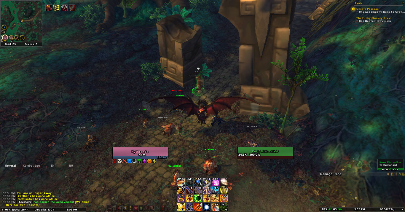 | Description | Hello there Before I made this report I checked if the quest https://www.wowhead.com/quest=30269/unsafe-passage is already been reported and it is, but the status of the topic says its Resolved but when I tried the quest it is not resolved still bugged, as you will see in the attached screenshots The panda is bugged he doesn't move after you talk to him and he is not in the position where the quest ends, so I hope it gets fixed after it's been reported for many times http://tracker.legionbugs.com/view.php?id=16331 http://tracker.legionbugs.com/view.php?id=16564 http://tracker.legionbugs.com/view.php?id=16564 | ||||
