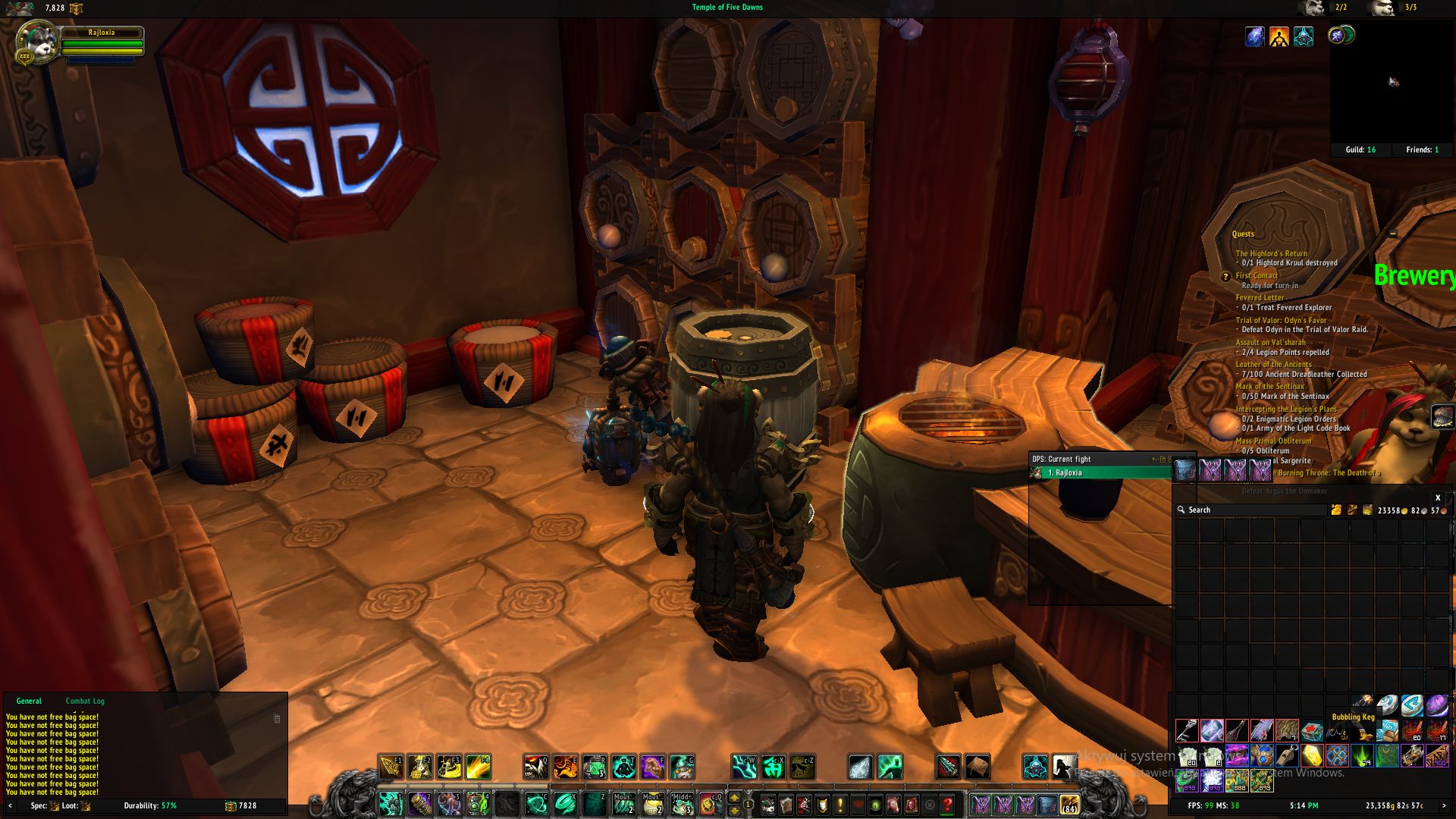 | Description | One day i log on my monk and i want to take my bubbling key and i just can't . I got information i don't have free bag slots and it's not true on the screen shot you can see i have 84 free bag slots and this still doesn't work i guess it is a bug but i don't know. | ||||