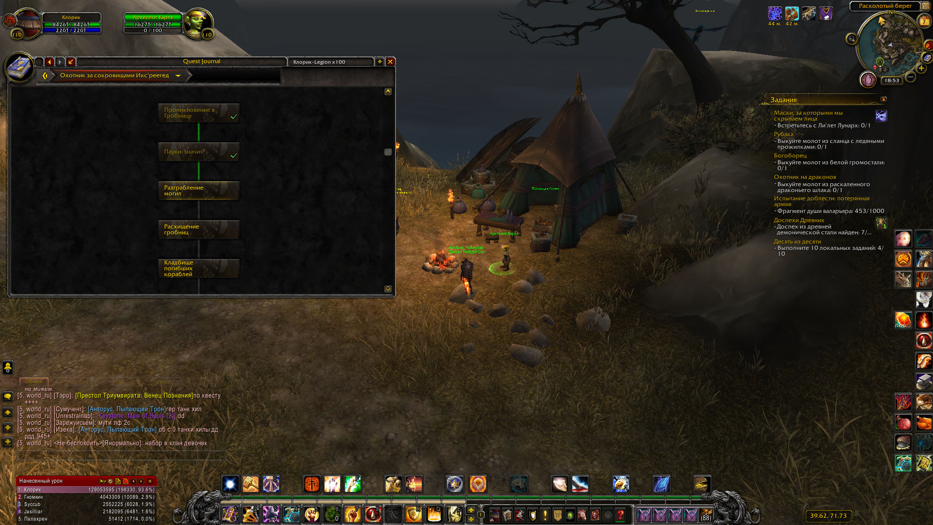 Здравствуйте! Задания у НПС https://ru.wowhead.com/npc=119886/археолог-карла доступны после сдачи предыдущего квеста только спустя сутки. Т.е. Вы сдали задание https://ru.wowhead.com/quest=46499/пауки-значит , а следующее задание https://ru.wowhead.com/quest=46501/разграбление-могил будет доступно только через сутки. Бага нет, тему закрываю. |