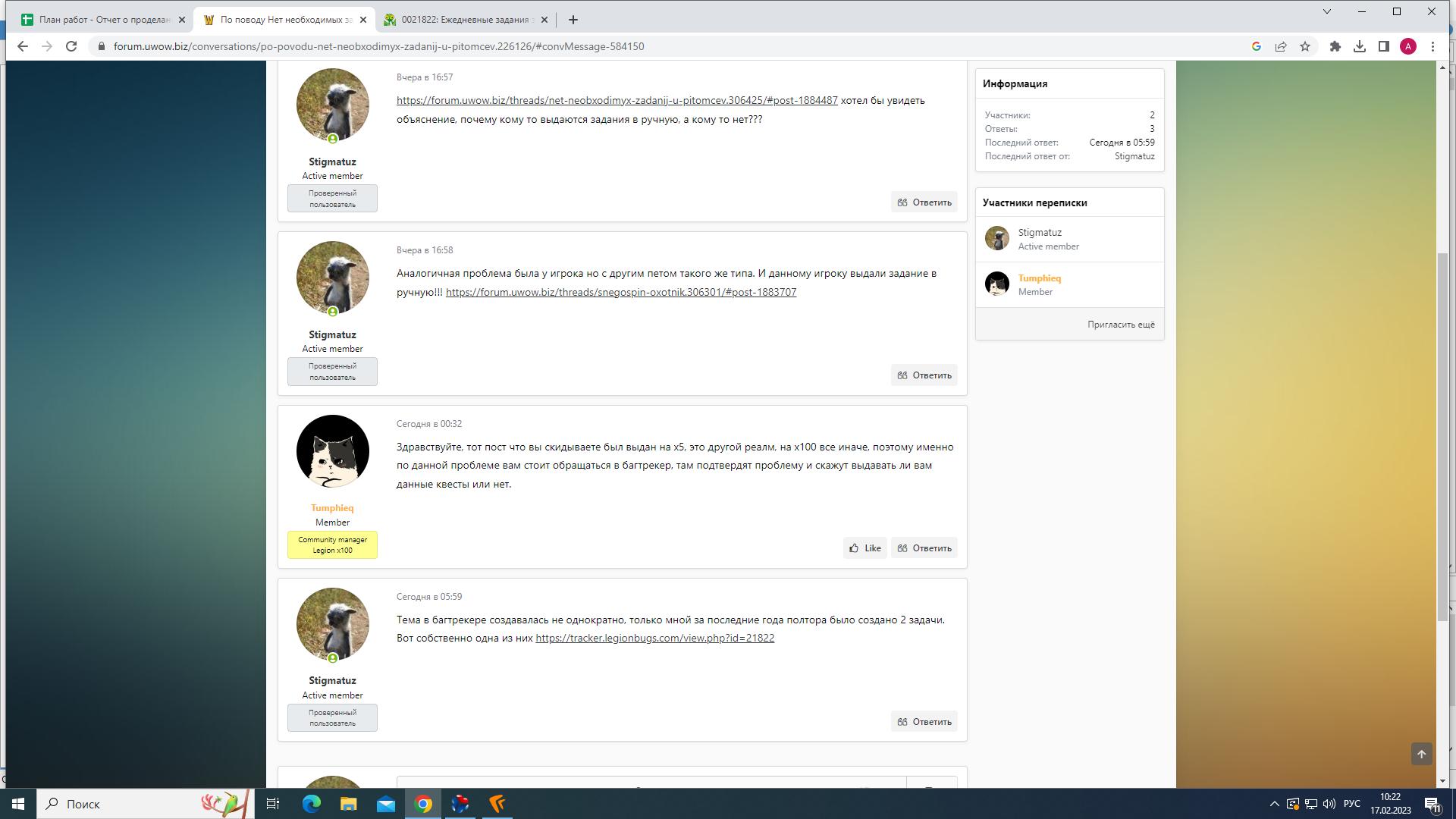 @Slam сегодня https://www.wowhead.com/ru/npc=115784/%D0%B4%D0%B5%D1%82%D0%B5%D0%BD%D1%8B%D1%88-%D1%81%D0%BD%D0%B5%D0%B3%D0%BE%D1%81%D0%BF%D0%B8%D0%BD%D0%B0#comments дал задание https://www.wowhead.com/ru/quest=44957/%D1%83%D1%80%D0%BE%D0%BA%D0%B8-%D0%BE%D1%85%D0%BE%D1%82%D1%8B-%D1%88%D0%B8%D0%BF%D0%BE%D1%85%D0%B2%D0%BE%D1%81%D1%82%D1%8B%D0%B5-%D0%B1%D0%BE%D0%B1%D1%80%D1%8B, но при заходе на других персом опять первый квест предлагает, тогда как должен продолжать цепочку. Возможно я какой-то баг поймал и всё-таки смогу выполнить потихоньку цепочку. Тут другой вопрос: можете Вы порезать способность https://www.wowhead.com/ru/pet-ability=578/%D0%B7%D0%B0%D1%80%D1%8B%D1%82%D0%BE%D0%B5-%D1%81%D0%BE%D0%BA%D1%80%D0%BE%D0%B2%D0%B8%D1%89%D0%B5, которая встречается у петов https://www.wowhead.com/ru/quest=44957/%D1%83%D1%80%D0%BE%D0%BA%D0%B8-%D0%BE%D1%85%D0%BE%D1%82%D1%8B-%D1%88%D0%B8%D0%BF%D0%BE%D1%85%D0%B2%D0%BE%D1%81%D1%82%D1%8B%D0%B5-%D0%B1%D0%BE%D0%B1%D1%80%D1%8B, т. к. практически нереально пройти? https://tracker.legionbugs.com/view.php?id=25026 вот тут я указывал об этом баге |