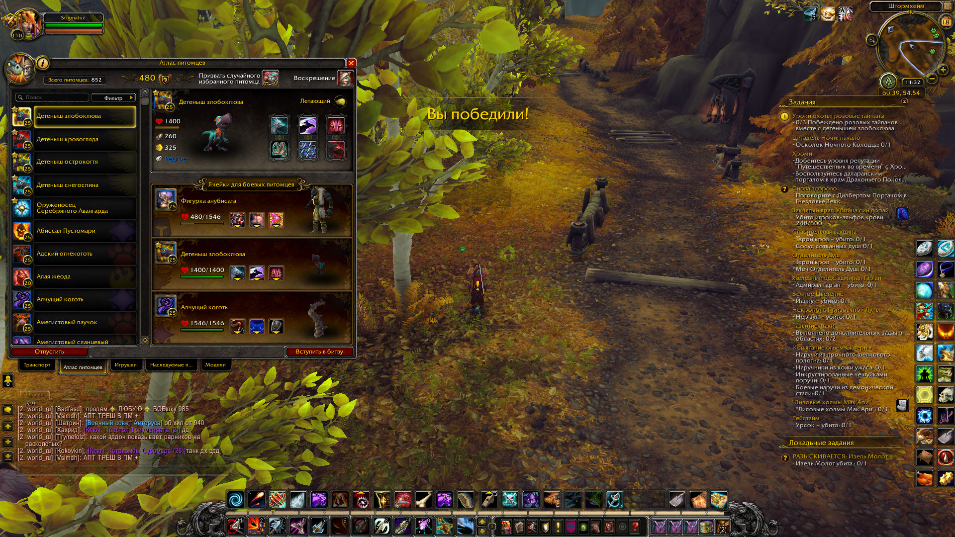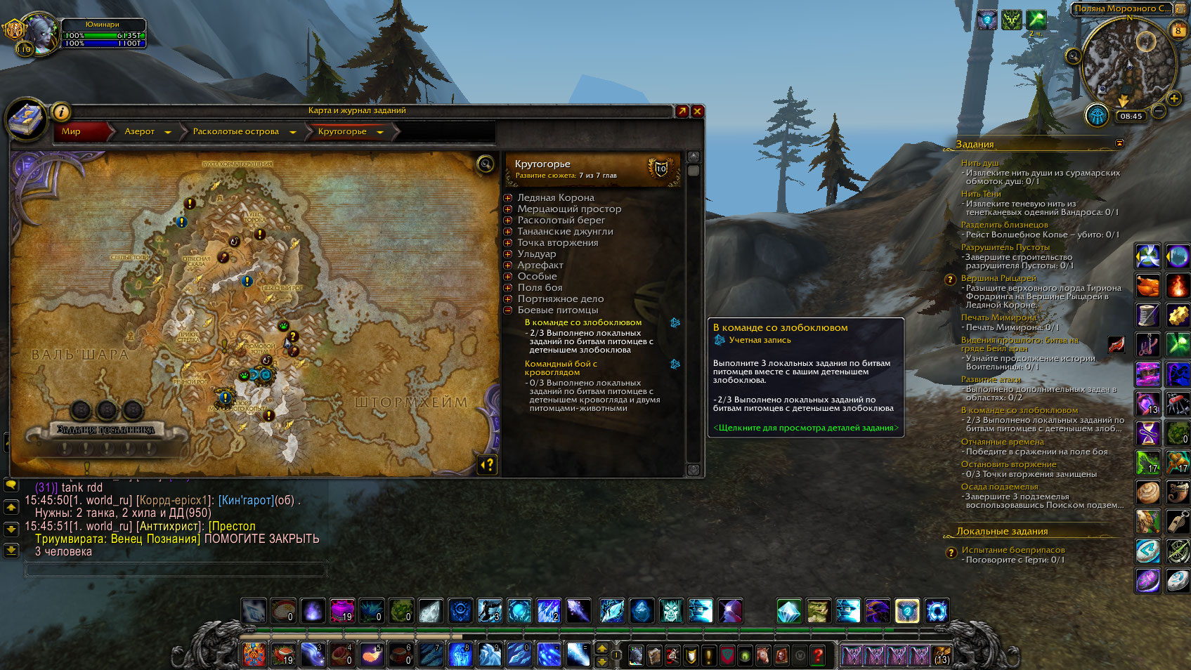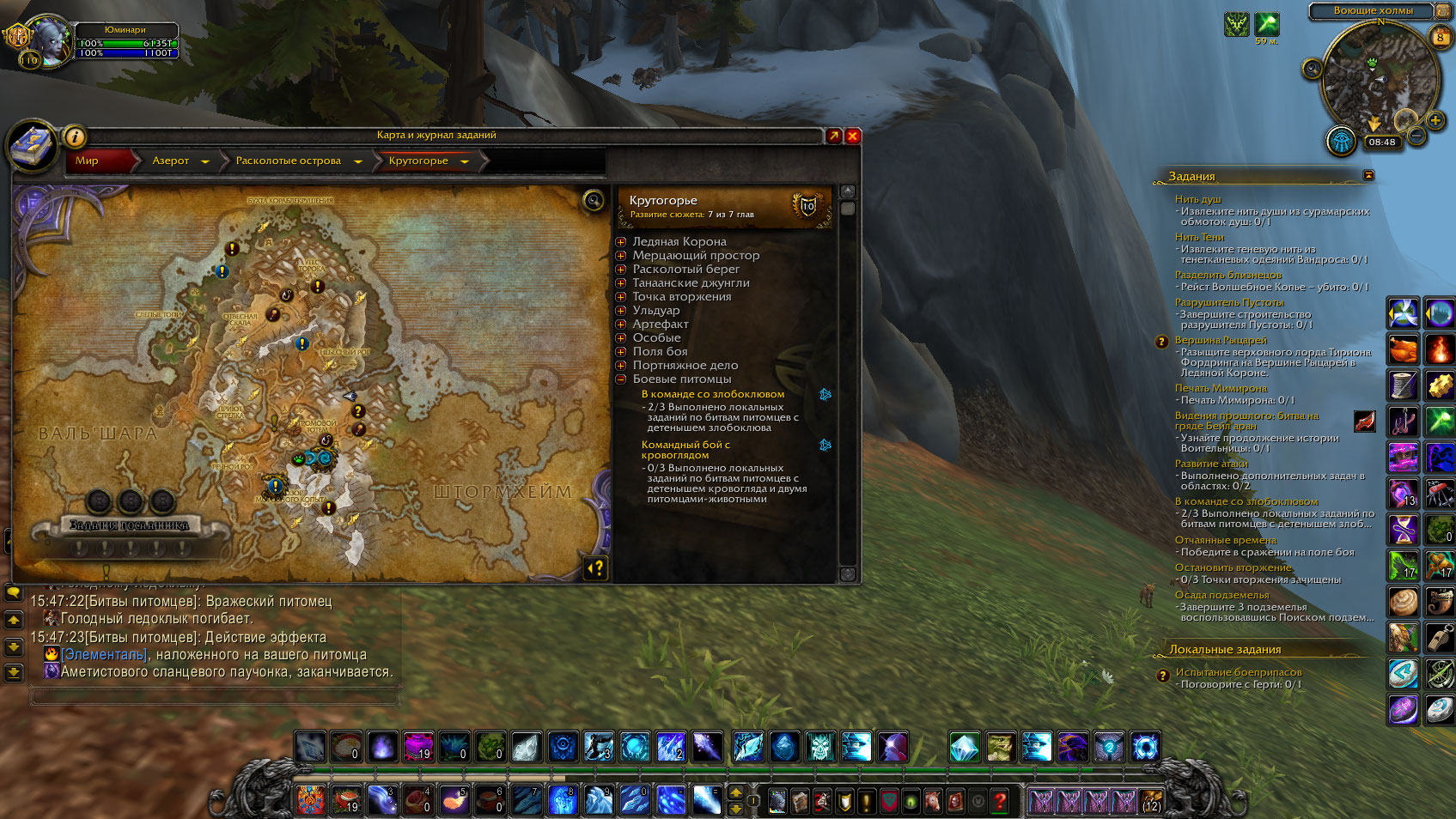 Вчера полностью получилось выполнить цепочку Злобоклюва. Повезло то, что задание с локалками битв питомцев не откатили прогресс после обновления. |