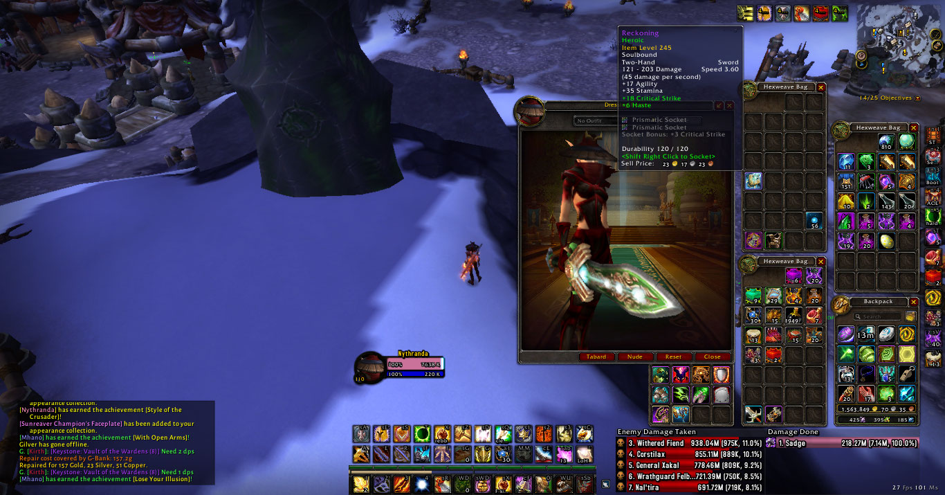 | Description | Hello So if you run https://www.wowhead.com/zone=4722/trial-of-the-crusader heroic you can get one of these two weapons if you are lucky, however, if you are alliance you get https://www.wowhead.com/item=47737/reckoning and if you are Horde you get https://www.wowhead.com/item=47884/edge-of-agony instead But in this server It's bugged because I'm Horde and I got the Alliance weapon instead of the Horde one you can see that in the screenshot I attached at the bottom | ||||