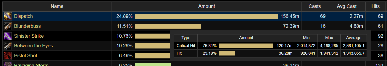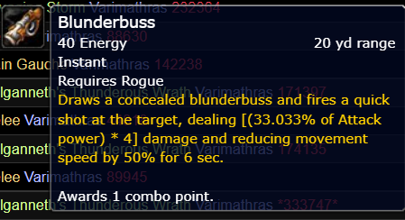 | Description | Трейт артефакта разбойника специализации головорез https://ru.wowhead.com/spell=202897/%D0%BC%D1%83%D1%88%D0%BA%D0%B5%D1%82%D0%BE%D0%BD Наносит вместо серии выстрелов (4 выстрела) один выстрел , и один выстрел из Леги кольца (знак черного ворона) Лог боя офф сервера https://www.warcraftlogs.com/reports/QrcnDzRdX3tghJ2N#fight=20&type=damage-done&source=19&view=events Ниже скрины | ||||