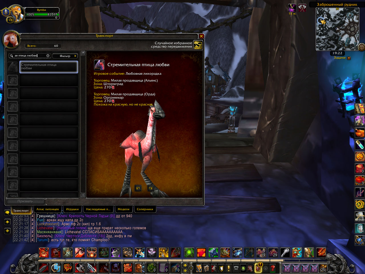Если играть на Эпике за Орду, то http://forum.epicwow.com/topic/15-pravila-proekta-epic-wow/ п. 1.3 по теме - в прошлый сезон этого ивента были проблемы с добавлением петов (птенец птицы любви) в коллекцию, но это устранили через пару месяцев. с добавлением маунта проблем не было, по крайней мере на Эпике и на Орде. Я понимаю так, что тестер добавил птицу в коллекцию маунтов, подождал какое то время и когда с ней ничего не случилось, закрыл тему. Если дело происходит на Эпике - могу продать за много-много голда запасную (да да, за время ивента можно получить две птицы и более) птицу Вам, kifff. Естественно никаких гарантий по применению итема я дать не смогу :) |