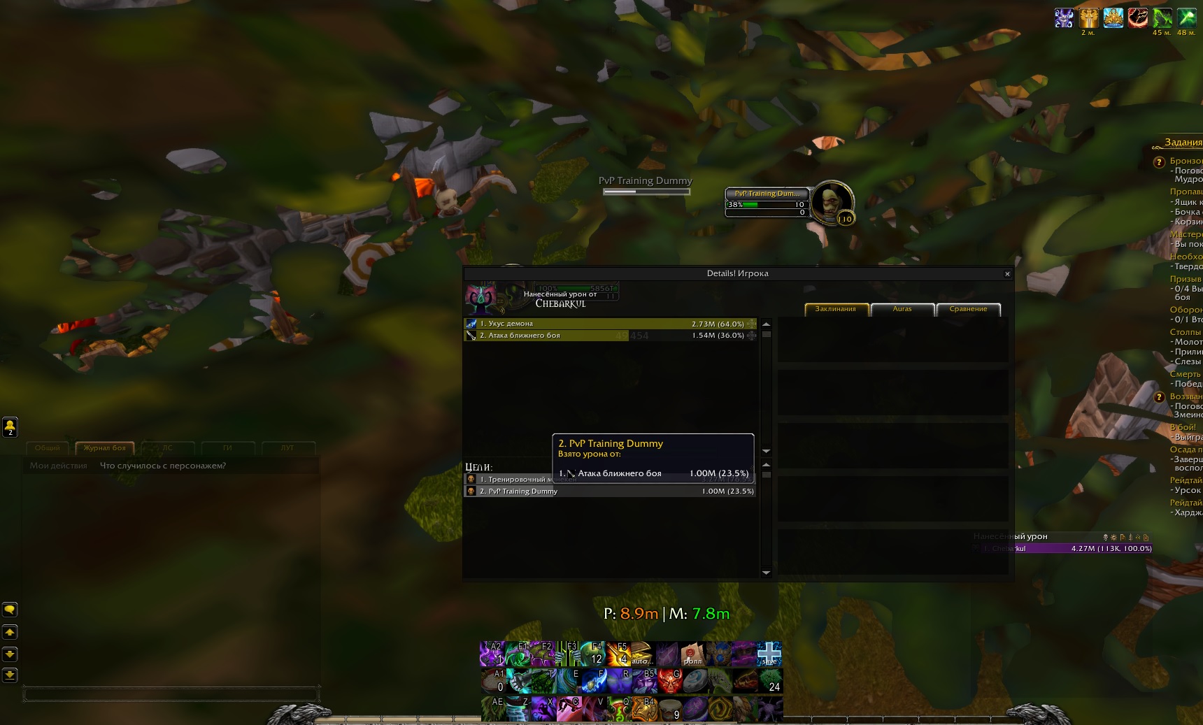 | Description | https://ru.wowhead.com/spell=235903/%D0%BF%D1%80%D0%BE%D0%B2%D0%B0%D0%BB-%D0%BC%D0%B0%D0%BD%D1%8B Был проведён замер по времени и по нескольким полям боя, цели стоявший в стане - 5 секунд не получали урон от провала маны(срабатывает через 2 секунды после применения), который был под ними. Отражение заклинаний на чернокнижнике не было, то же самое и на других целях, кто будучи в контроле стоял в провале маны - урона нету от него. В частности вот на скрине урон по чернокнижнику - нету урона от провала маны, хотя он простоял все 5 секунд в стане. | ||||