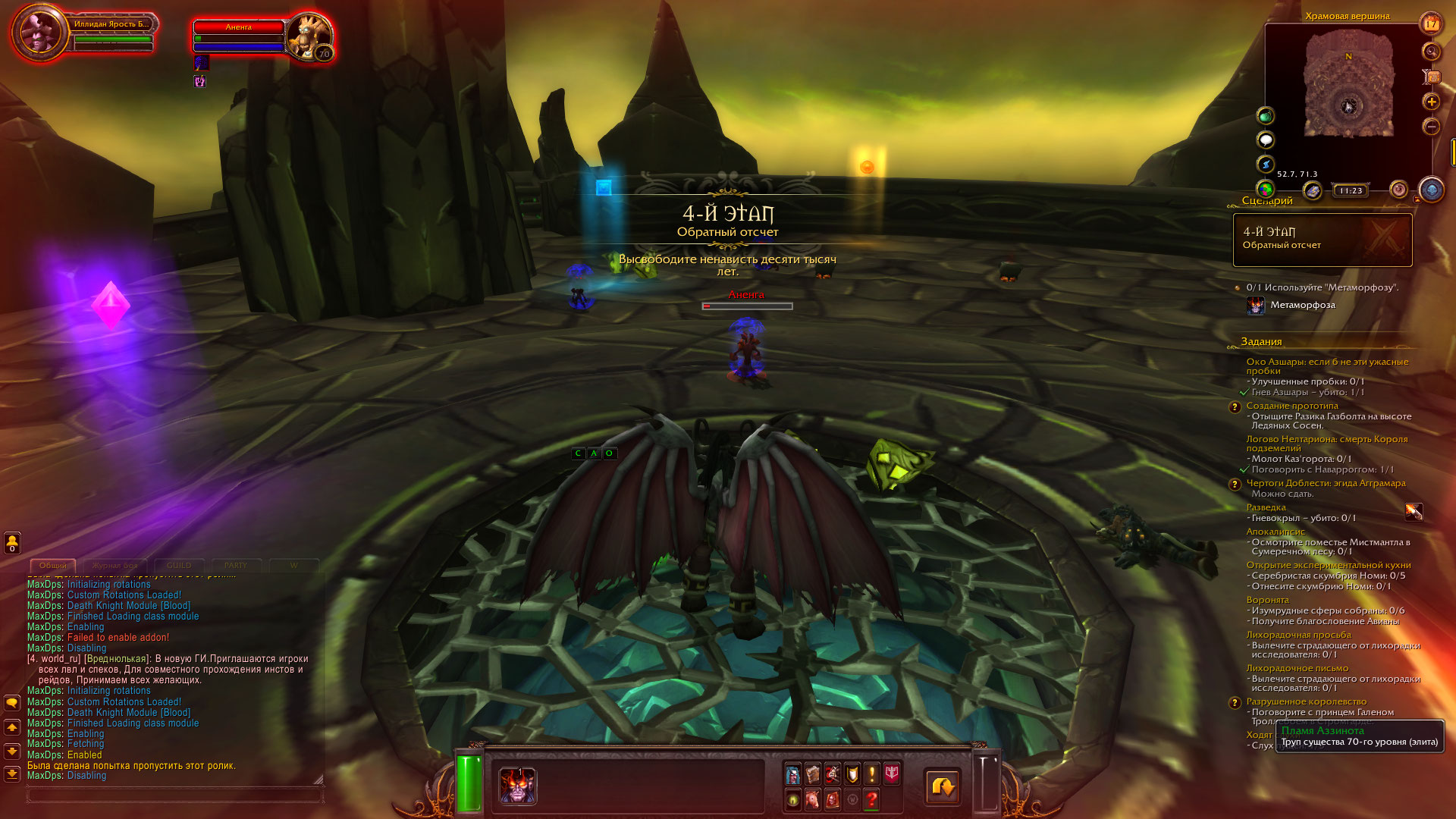 | Description | квест Неисполненная судьба https://ru.wowhead.com/quest=44481/%D0%BD%D0%B5%D0%B8%D1%81%D0%BF%D0%BE%D0%BB%D0%BD%D0%B5%D0%BD%D0%BD%D0%B0%D1%8F-%D1%81%D1%83%D0%B4%D1%8C%D0%B1%D0%B0 https://ru.wowhead.com/quest=44497/%D0%BD%D0%B5%D0%B8%D1%81%D0%BF%D0%BE%D0%BB%D0%BD%D0%B5%D0%BD%D0%BD%D0%B0%D1%8F-%D1%81%D1%83%D0%B4%D1%8C%D0%B1%D0%B0 https://ru.wowhead.com/quest=44496/%D0%BD%D0%B5%D0%B8%D1%81%D0%BF%D0%BE%D0%BB%D0%BD%D0%B5%D0%BD%D0%BD%D0%B0%D1%8F-%D1%81%D1%83%D0%B4%D1%8C%D0%B1%D0%B0 на последней фазе, когда надо победить Майев, вместо иллидана я возвращаюсь к своему облику, и убийство Майев не засчитывается | ||||