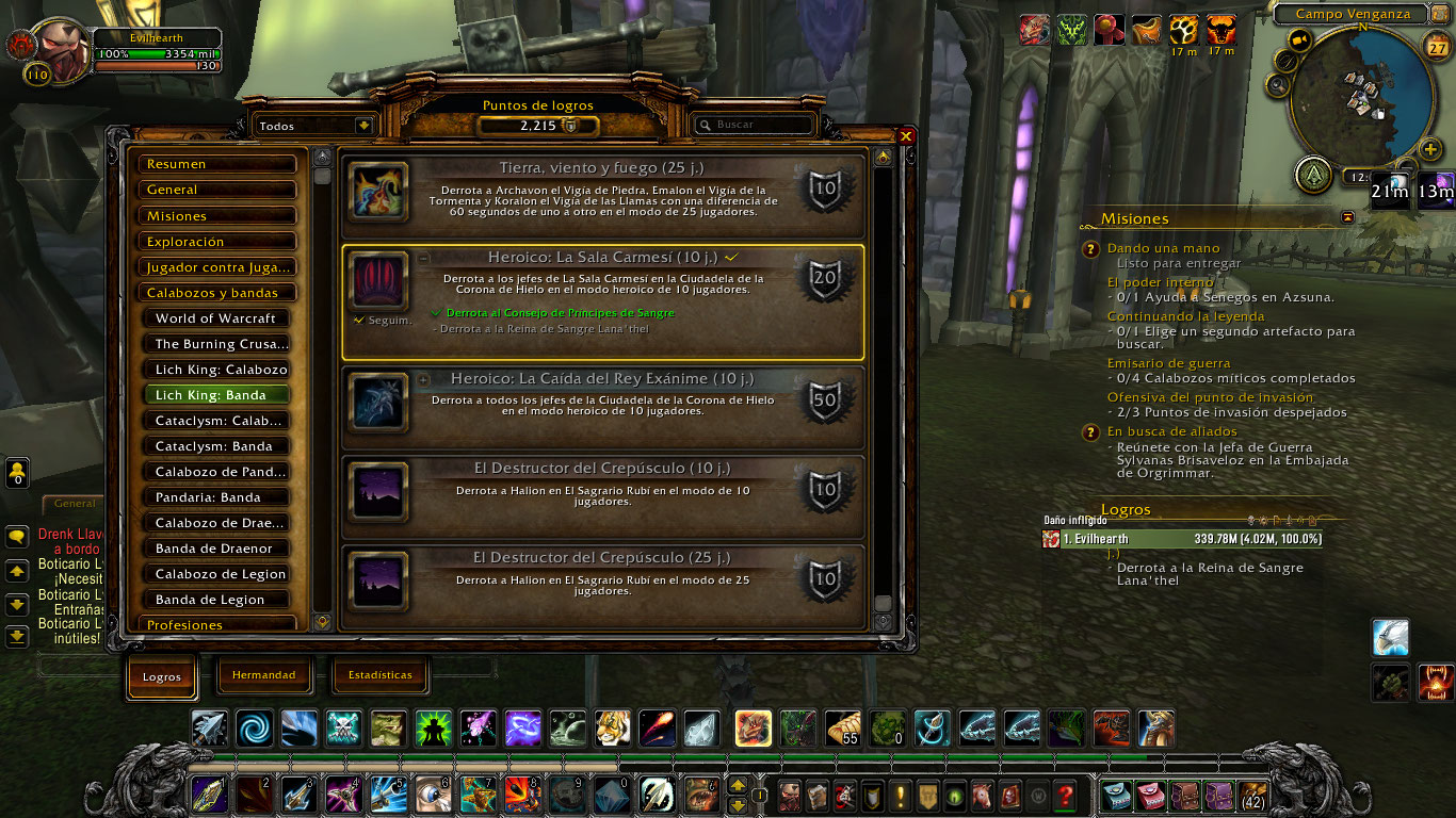 | Steps To Reproduce | mato a la reina de sangre lana'thel en 10hc y no me da el logro de sala carmesi 10hc | ||||