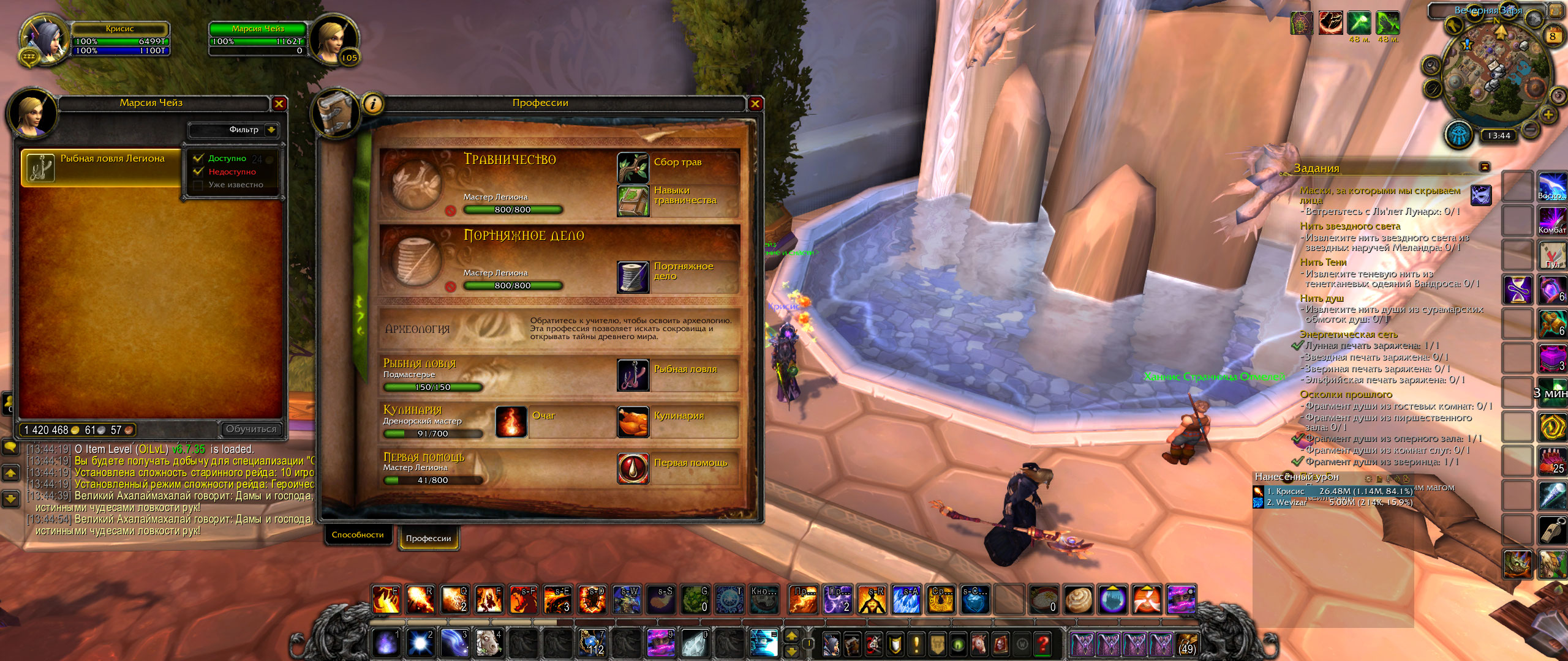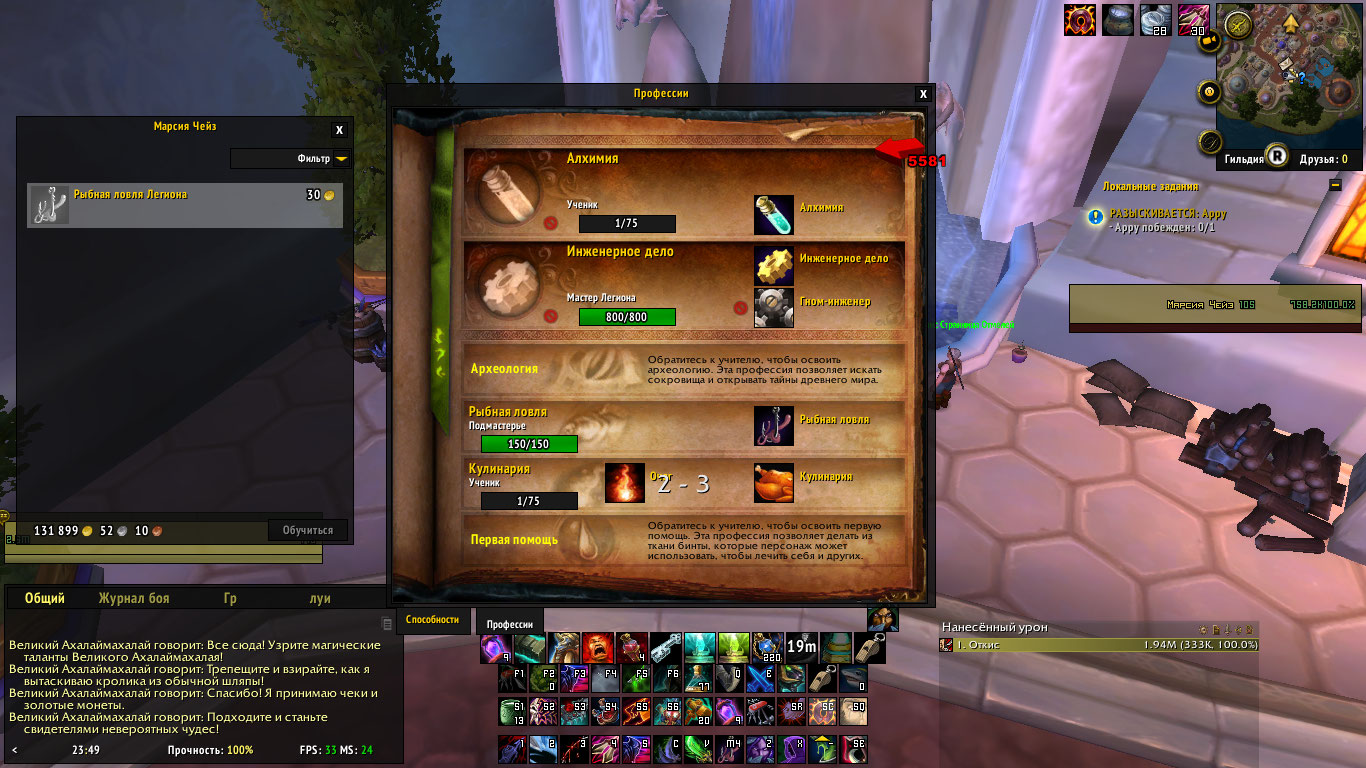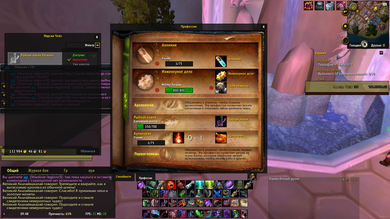 | Description | Персонаж "Откис" легион х5 Нет возможности прокачать навык рыбалки выше 150, побывал бегать к тренерам из разных дополнения, также побывал использовать руководство по рыбалке из дренора, ничего не помогает. | ||||