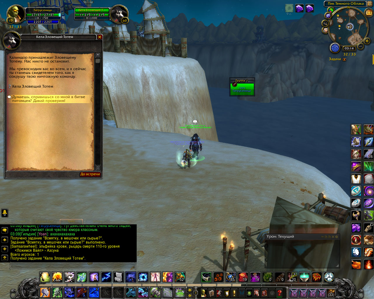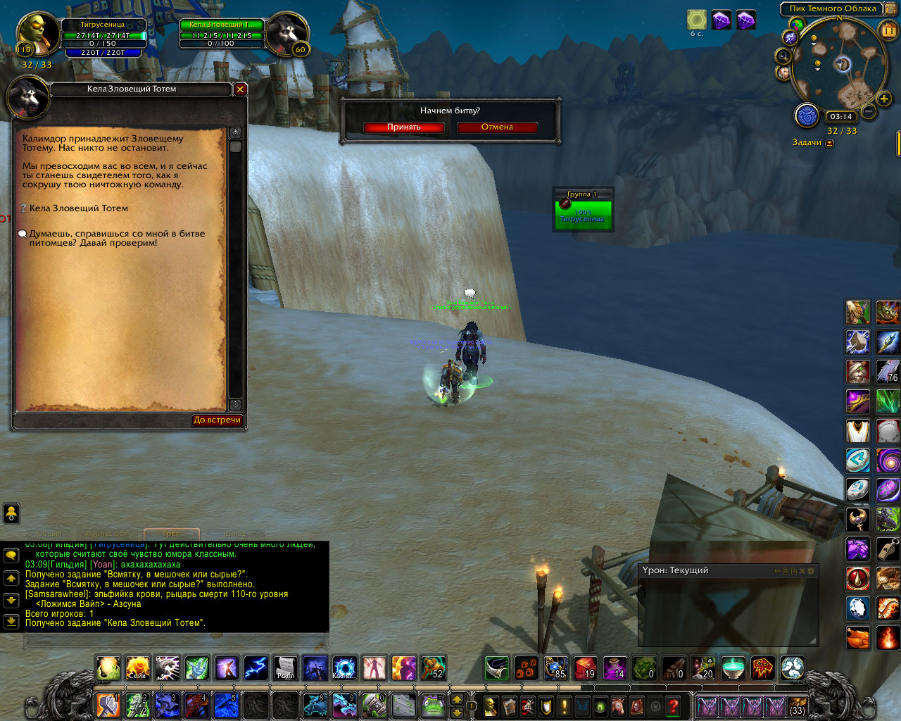 | Description | Здравствуйте. После принятия квеста на битву петов у Келы Зловещий тотем бой с ней не запускается. У всех укротителей по два варианта диалога, и обычно один из них работает и запускает бой. У этой дамы диалог один, и он, к сожалению, не позволяет подраться. | ||||