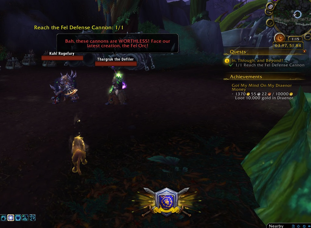 | Description | 2nd phase of the quest can not be completed due to the missing Fel Defense Cannon | ||||