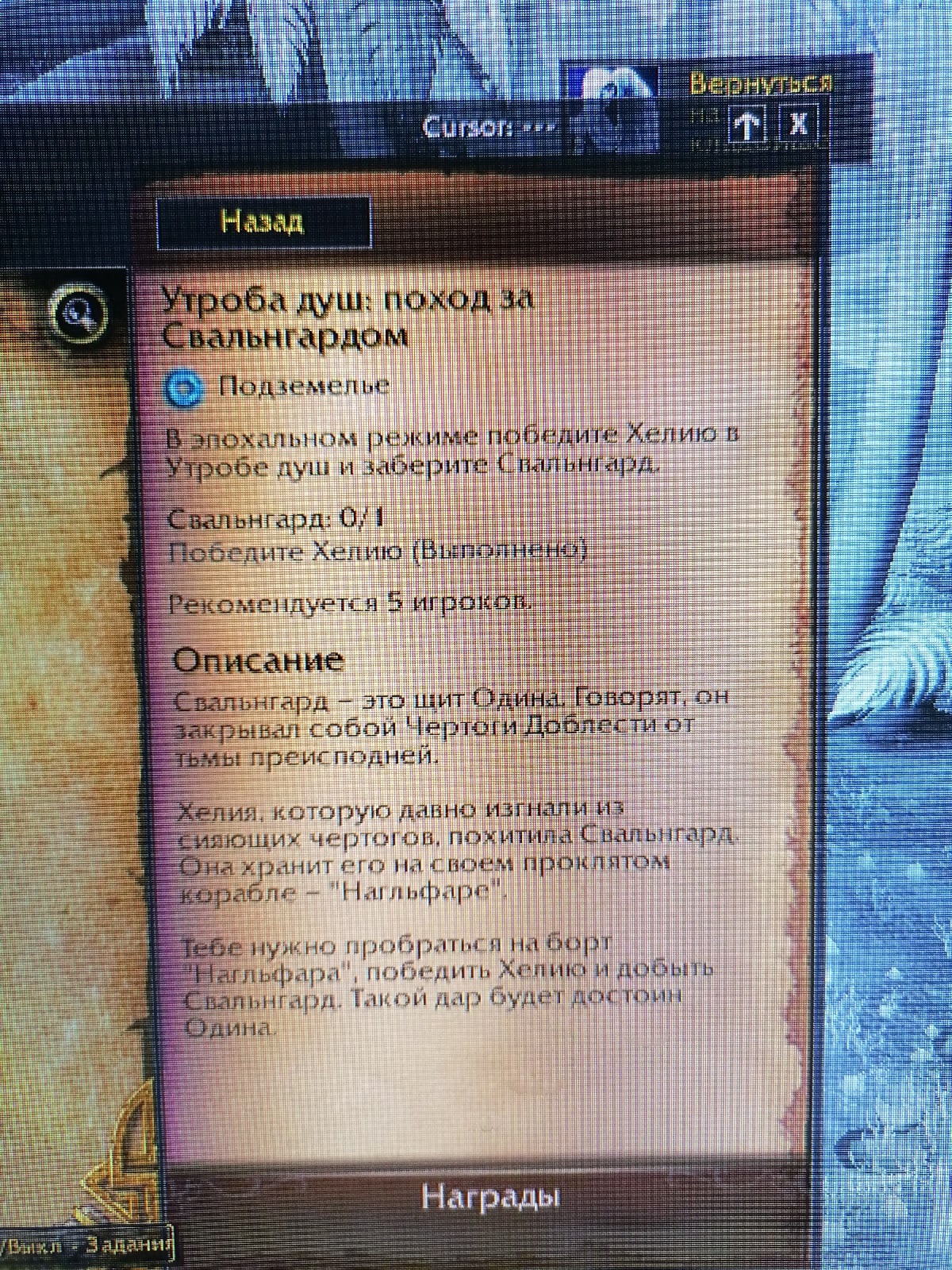 | Description | Доброго времени суток! У меня возникла проблема с очень важным для меня кв в ветке квестов до баланса сил, а именно [Утроба душ: поход за Свальнгардом]. В подземелье не берётся предмет Свальнгард, у человека который был со мной он так же не взялся. А без этого кв невозможно продвинуться дальше по цепочке важных квестов. | ||||