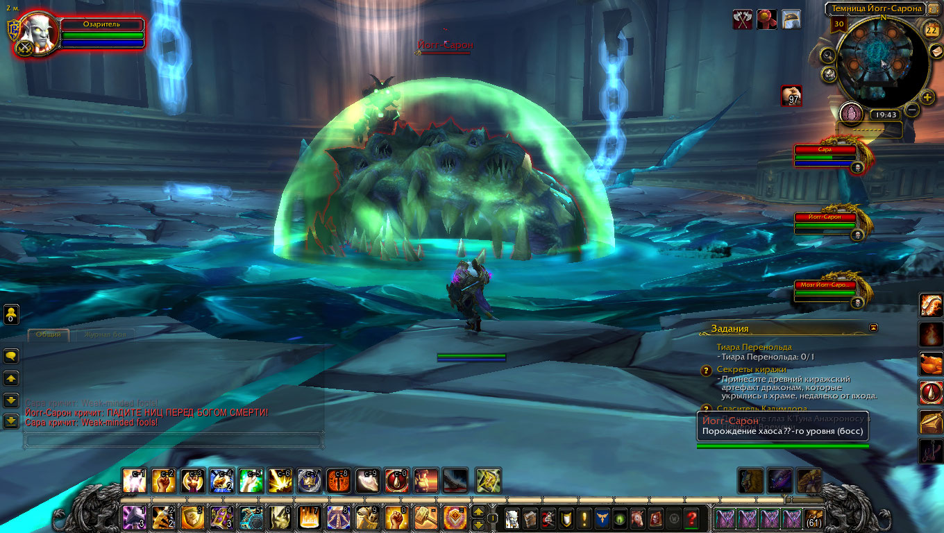 PsichoLirik Молот Рока у Вас есть, уже хорошо. Найдите здесь на багтрекере аддон от СерогоМыша QuestLineTester, поставьте и проверьте пункт Оплот. Для справки скидываю скрины с моего шамана. Аддон выдает последовательность квестов по номерам, названия и ИДы с вовхеда. Те квесты что у меня красные - для кампании оплота и получения классового манута необязательны. Сейчас Вас должны интересовать первые 10-12 квестов. Если какие то из начальных квестов не выполнены - ищите на вовхеде у какого НПЦ в оплоте их брать и делайте. Если шама сделан больше года назад - это будет видно - там обычно защитники есть а квесты не засчитаны. Если для Вас лень не двигатель прогресса - можно проверять выполнение квестов цепочки оплота по одному командой .q s xxxxx , вместо ххххх подставляя ИДы квестов с моих скринов, их там видно. И если найдете квест, который не выполнен и взять его не у кого - пишите сюда, не скрывайте инфу. |