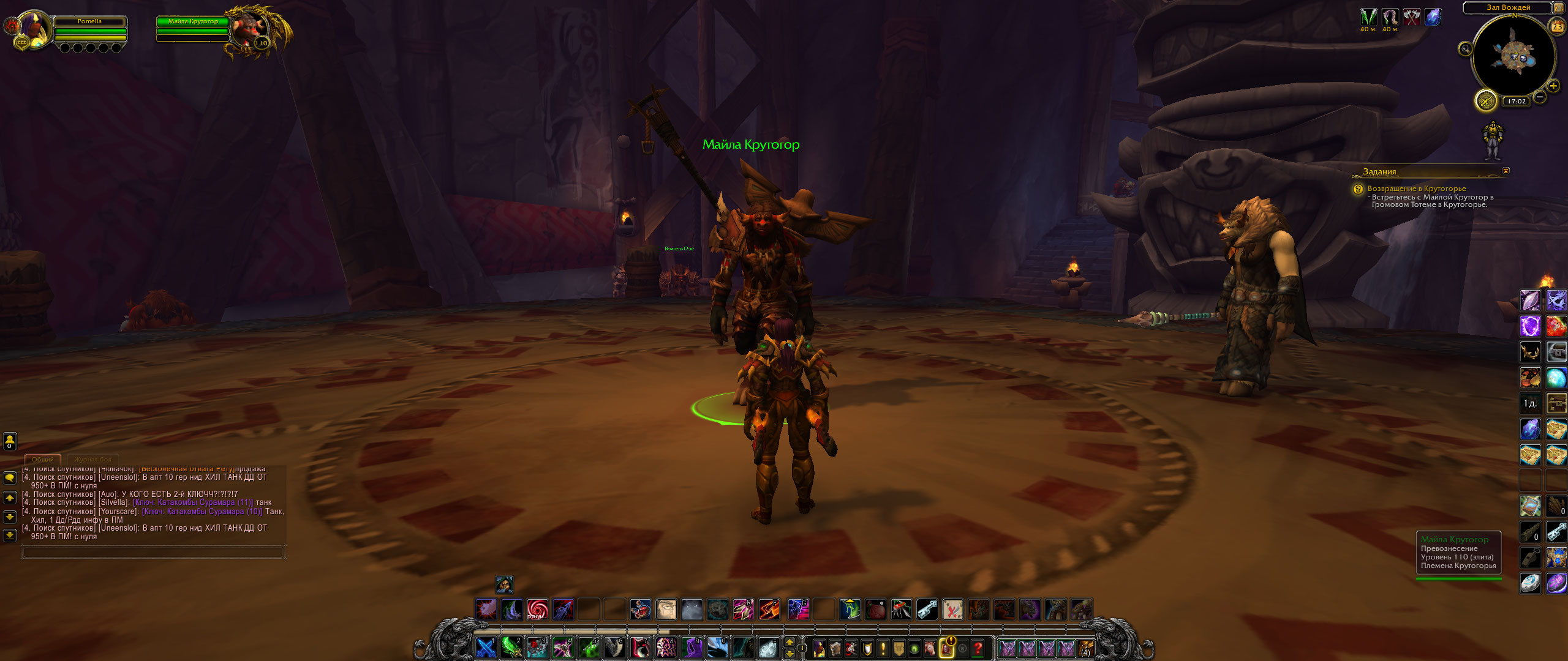 Крутогорье делается за вечер. Тут Вам не Сурамар, локалки делать не надо и соратников за задания гонять тоже. И рейд вычищать не надо. Максимум - если надо ачив - зачистить обычку Логово Нелтариона, но и без этого можно обойтись. |