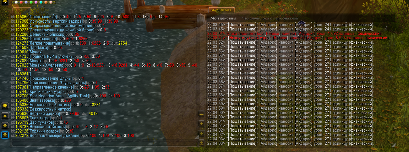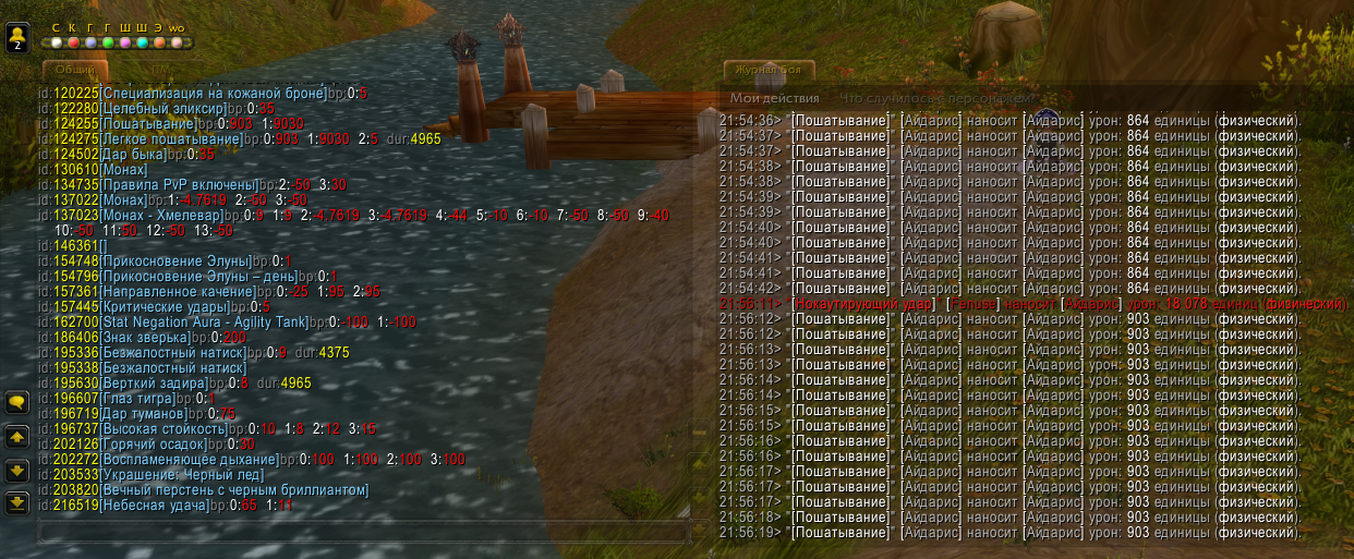 когда окажетесь вне боя и если поймаете тикающий стаггер, используйте _scan и сфокусируйте внимание на ауру 124255, нужно понять, что в этом случае пишут базапоинты эффекта |
