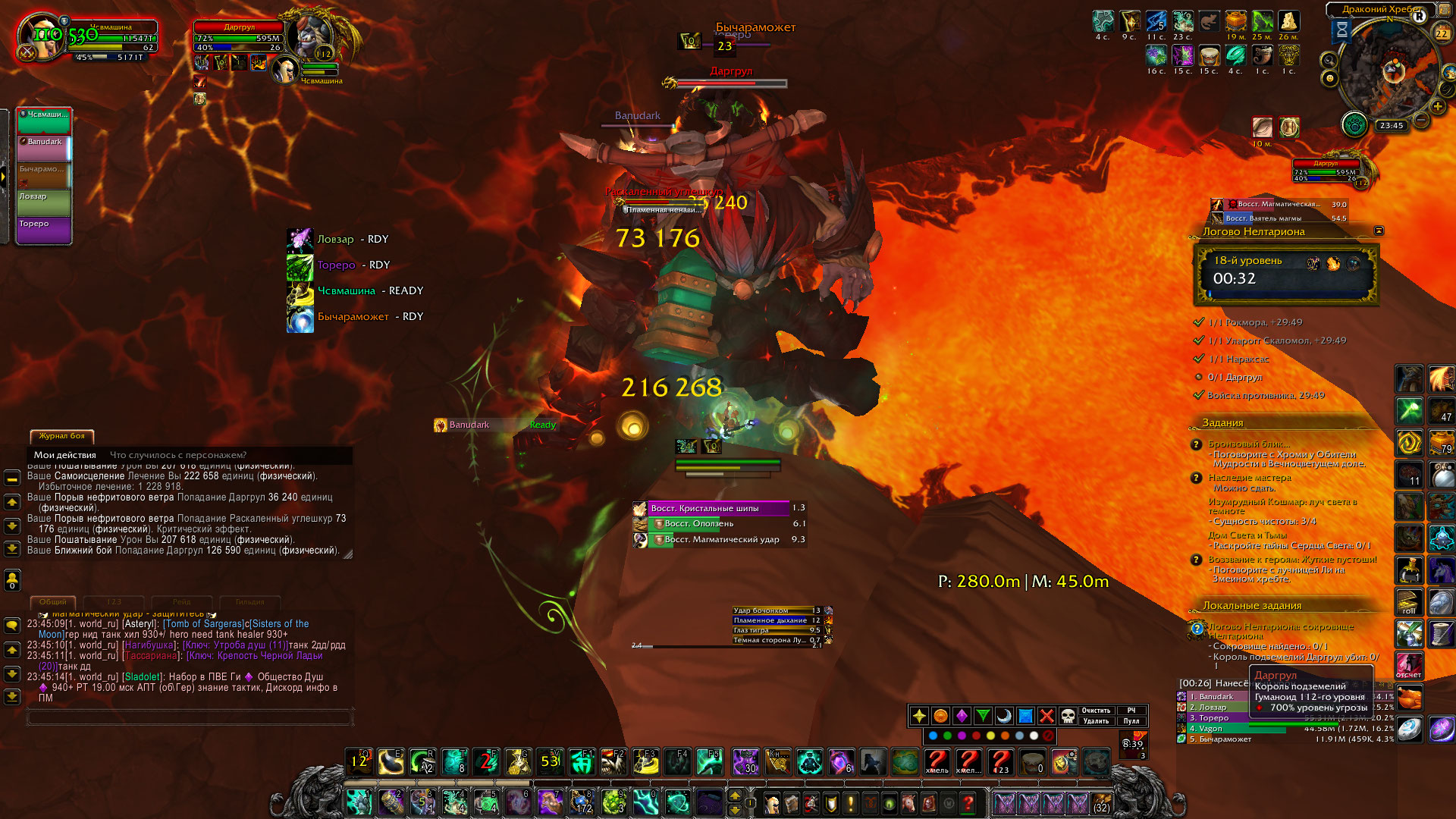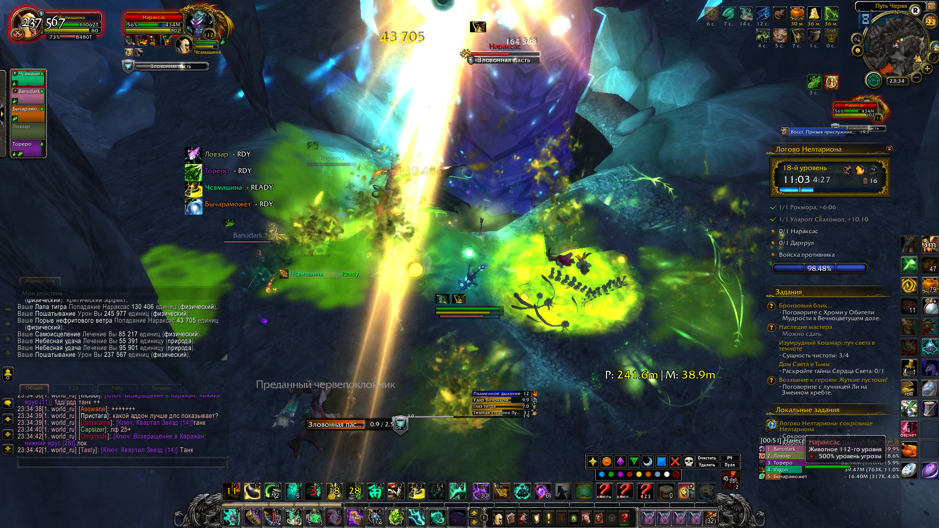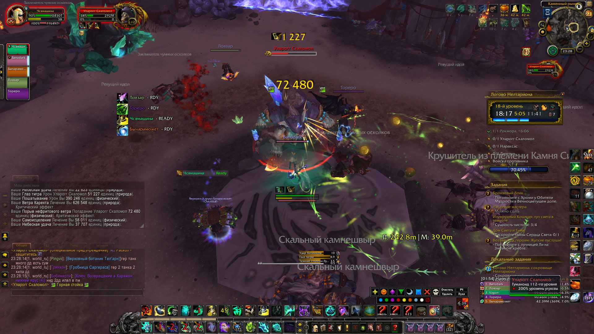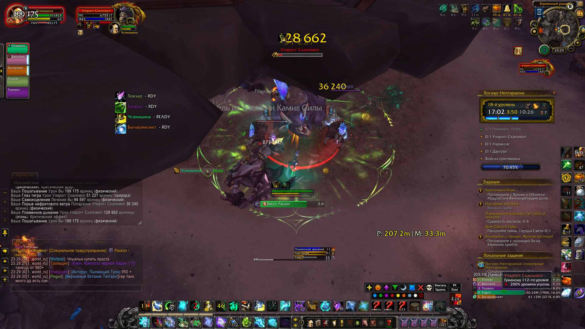 пример того, что пошатка до сих пор не работает, переодически спадает, уларога дважды заскринил, перед фазой она пропала, пока шла фаза с перемещением тотемов, пошатка обнулилась и дальше уже снова появилась и после вновь пропала, также на Нараксас спала, насколько я заметил на моменте когда она начала съедать мобов, сменился таргет, съела одного и после пропал дебаф, на ласте же после призыва моба спала пошатка, самое интересное, в том, что https://www.wowhead.com/ru/item=137079/успокаивающий-кушак-гая-плина работает, словно есть внутренний счет, после пропадания дебафа, от которого отхиливает 25% от пошатки, но при этом сама пошатка очищающим отваром не скидывается |