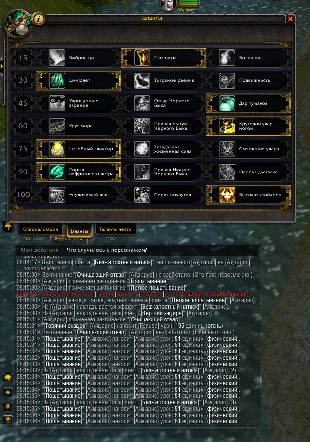 Чем больше очистил тем больше нанес урона, так должно работать. Было 5 000 000 урона отложено, очистил 60% отваром ( 60% - это с этим талантом), осталось 2 000 000 в пошатывании, от разницы 5 000 000 - 2 000 000 = 3 000 000 талант должен взять 30% и нанести в виде урона от огня всем окружающим. p.s. а почему https://www.wowhead.com/ru/spell=202126/%D0%B3%D0%BE%D1%80%D1%8F%D1%87%D0%B8%D0%B9-%D0%BE%D1%81%D0%B0%D0%B4%D0%BE%D0%BA наносит 30%, а не 50%? На вовхед последнее изменение на легионе, там 50%, а следующее уже 8.0.1 уже 30%. Либо они не все версии прописали, я что-то не нашел изменений по этому поводу. |