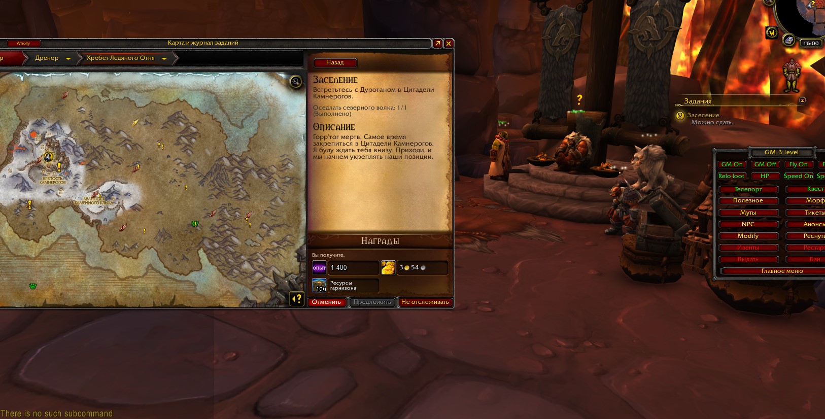 | Steps To Reproduce | .go cre id 80456 .q a 33816 .q reward 33816 .q a 34379 .q reward 34379 .go xyz 6821.9233, 5793.3027, 325.1907 .gm on .q a 33527 Сделать квест вручную .gm off Сдать квест .q a 33657 Прокатиться на волке .q r 33657 .go xyz 6813.5464, 5771.7744, 410.14896 | ||||